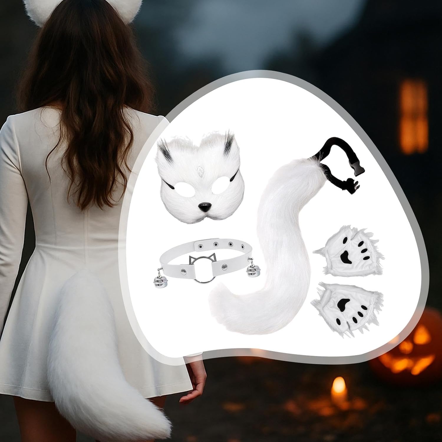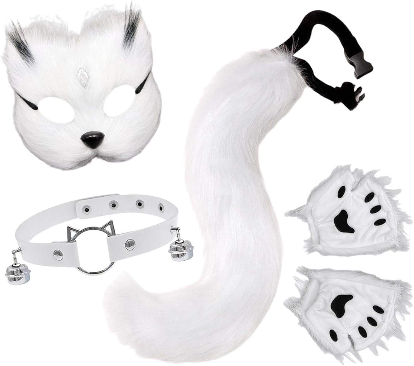 【Materiale di alta qualità】Il set di maschera e coda da è realizzato in peluche di alta qualità, affidabile, leggero e comodo al tatto 【Ottimo regalo】Questo grazioso e accattivante set di maschera e coda per gatti è una meravigliosa scelta regalo per amici e familiari in occasione di compleanni, feste, festività, riunioni, ecc. 【Set Cosplay Animale】: Grazioso set di costumi cosplay di animali, include 1 maschera, 1 coda, 1 girocollo e 1 paio di guanti , ottimo per il cosplay di un gatto o di una 【Ampie occasioni】Il set cosplay con maschera e coda di animali è ampiamente adatto per Halloween, feste, carnevali, spettacoli teatrali, oggetti di scena per foto, spettacoli, feste a tema, travestimenti, giochi di ruolo, ecc. 【Facile da indossare】 Questi accessori per cosplay di animali sono facili da indossare e da togliere, permettendoti di vestirti rapidamente. La coda ha una cintura regolabile, adatta a persone diverse