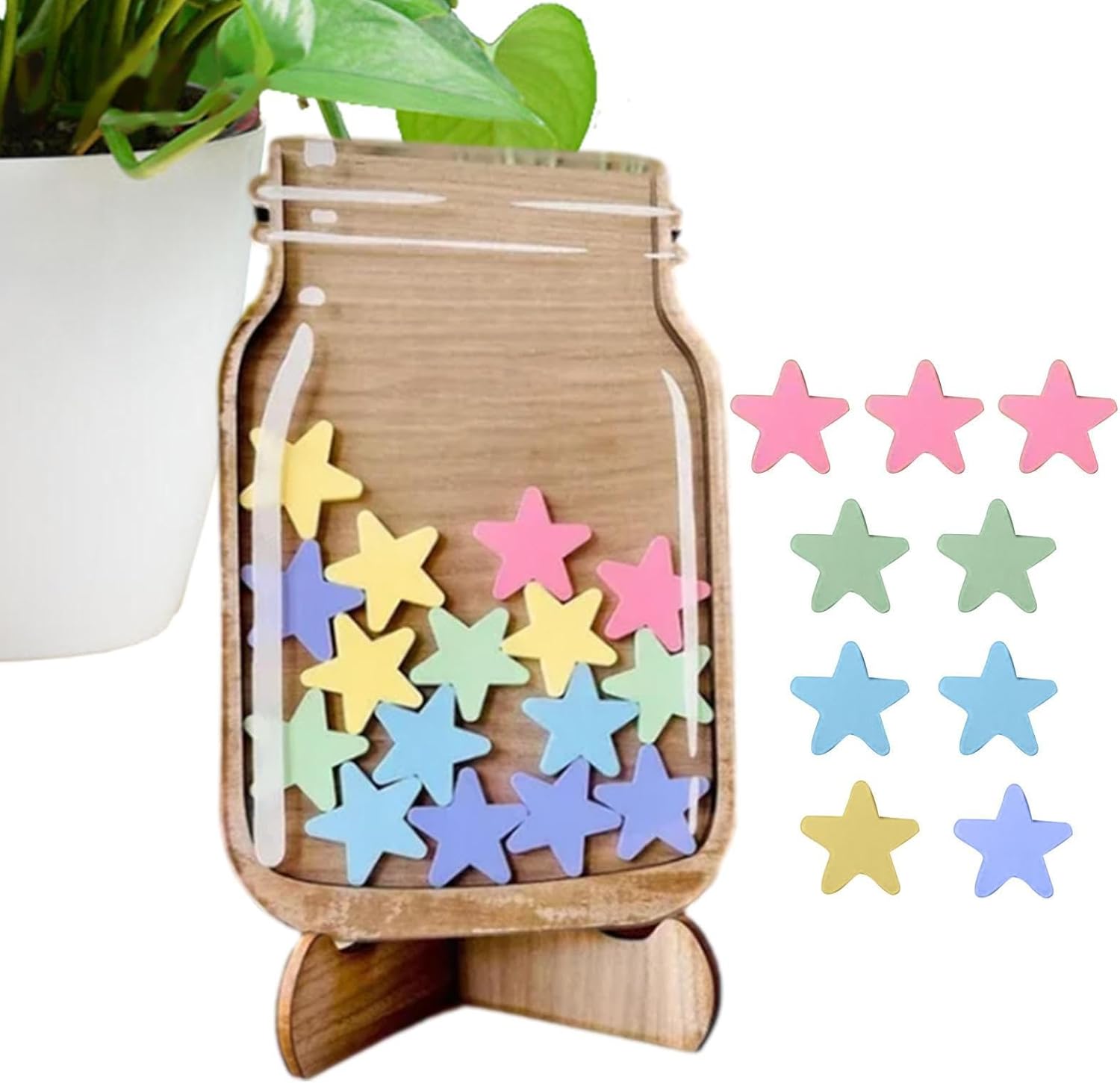 Applicazione variabile: sviluppa buone abitudini nei bambini con questo barattolo di ricompensa a stella. Pieno di stelle motivanti, completare le attività diventa divertente man mano che guadagni stelle e le guardi riempire il barattolo. Porta a comportamenti positivi, promuove una sana routine dentale, uno studio regolare e molto altro ancora. Efficace nelle scuole o nelle case, promuove la disciplina e le sane abitudini. Affidabile e durevole: il barattolo della ricompensa a stella è realizzato in legno robusto e liscio e garantisce un utilizzo più lungo senza usura o deformazione e porta molto divertimento. Completare le attività diventa divertente quando guadagnano stelle e li guardano riempire il barattolo Attraente barattolo di ricompensa: con 25 stelle colorate per attirare l'attenzione, questo barattolo di ricompensa a stella può essere utilizzato per vari scopi. Le commissioni diventano divertenti quando puoi guadagnare stelle e guardarle riempire il barattolo, come ad esempio: Il design carino piacerà sia ai bambini che agli adulti. Facile da trasportare: incoraggia gli studenti a imparare con il nostro barattolo premio Star leggero, un aiuto interattivo facile da trasportare e riporre. Crea attività divertenti, coinvolgi gli studenti e monitora i loro progressi. Rendi l'istruzione piacevole con questo strumento compatto e stimolante. Completare le attività diventa divertente quando guadagnano stelle e li guardano riempire il barattolo. Regalo attraente: fai il regalo perfetto con il nostro barattolo Star Reward. Sorprendili durante le vacanze, i compleanni o qualsiasi occasione e completa i compiti divertenti mentre guadagnano stelle e guardali riempire il barattolo. -Esprimi il tuo amore e la tua cura. Rendi felice la loro giornata con un regalo premuroso e unico che faranno tesoro per sempre. Mostra il tuo apprezzamento in un modo speciale.
