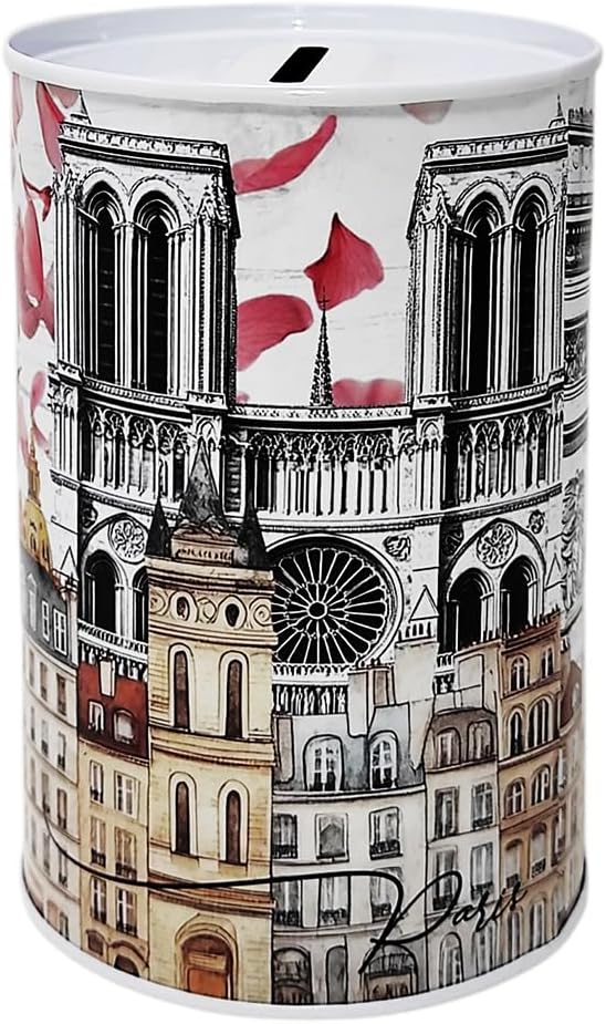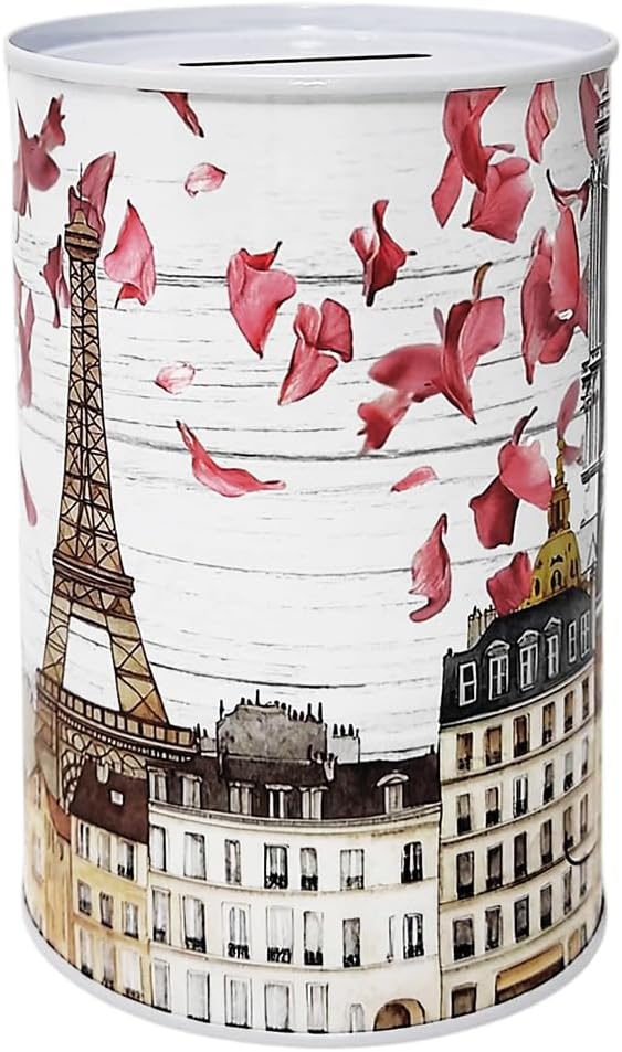 Salvadanaio in latta non apribile. Decorato con immagini caratteristiche di Parigi. Bella idea regalo per compleanno o altro evento. Materiale: latta. Il salvadanaio è apribile solo con l'apriscatole. Dimensioni: 13x8cm. Per altri articoli simili visita lo Store di CUCUBA, cliccando sotto il titolo di questa inserzione al link "Visita lo store di Cucuba".