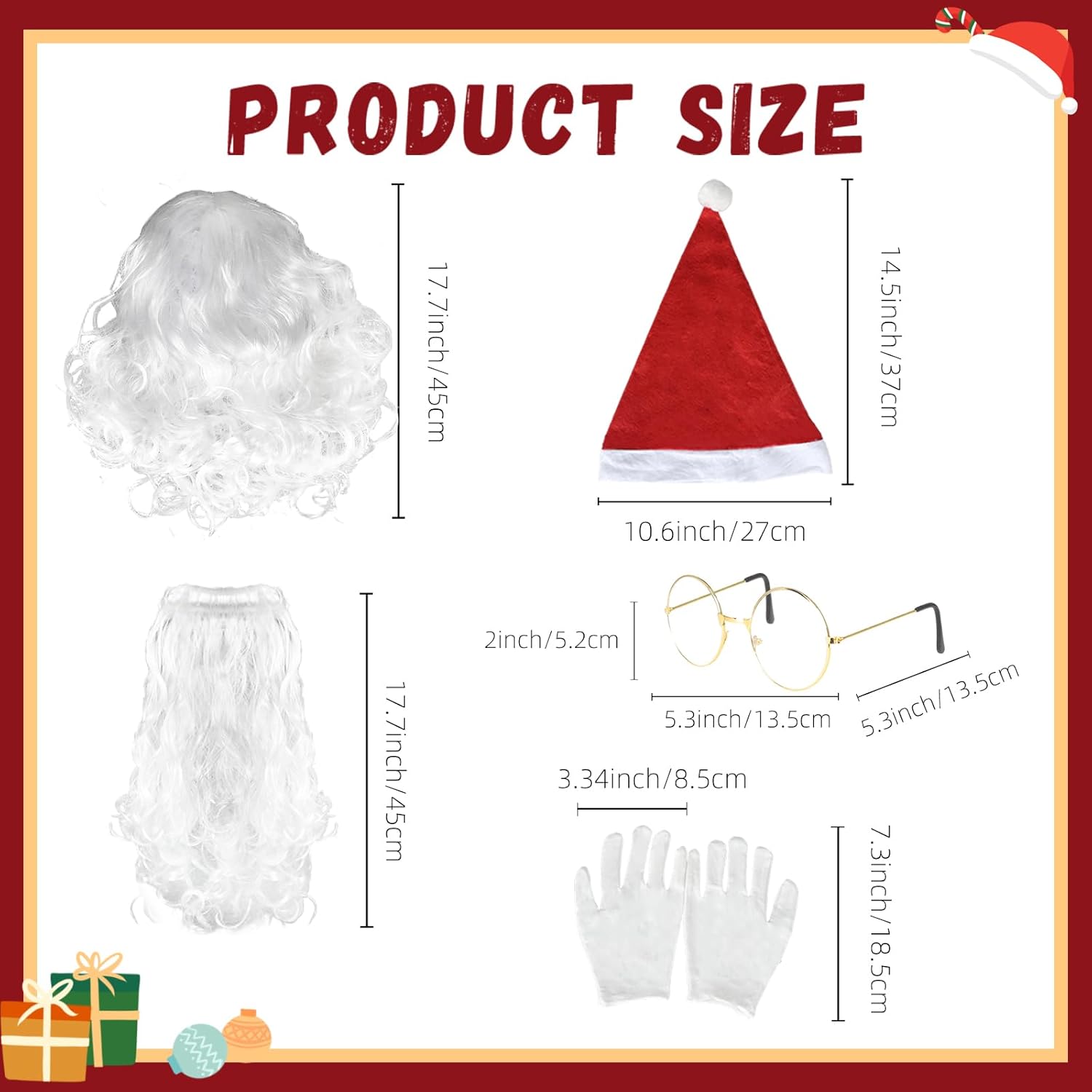 Specifiche: Nome: Set costume Babbo Natale Colore: Rosso, Bianco, Oro La confezione include: 1* Set costume Babbo Natale Note: 1. Misurazione manuale, si prega di considerare possibili lievi errori nelle dimensioni. 2. Il colore potrebbe presentare lievi differenze a causa delle diverse impostazioni dello schermo.