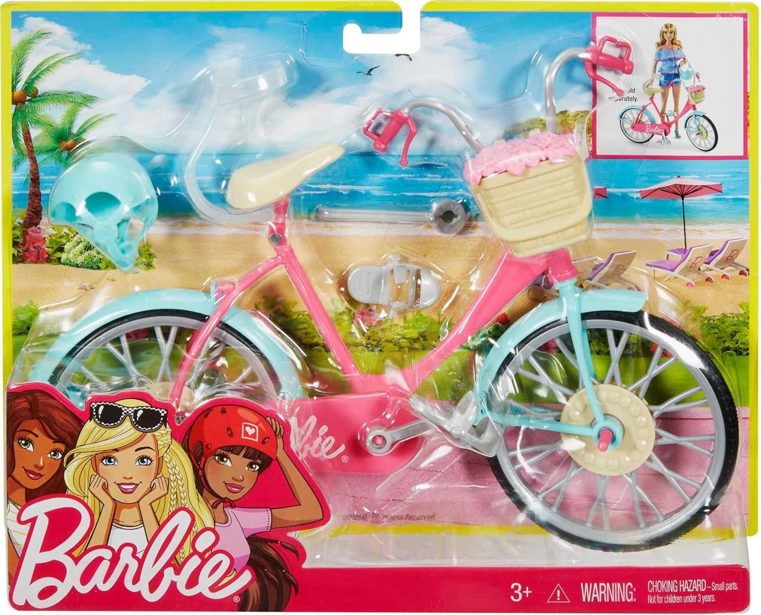 Questa bicicletta di Barbie è pronta per andare a ruota libera Pedali e ruote che girano davvero per tante gite spensierate Metti Barbie (in vendita separatamente) sulla sella che ha una clip che la sorregge; Infilale i piedi nei pedali e le mani sul manubrio, poi spingila per farla andare Il telaio rosa, i parafanghi azzurri e gli accenti argentati rendono questa bicicletta davvero sbarazzina Un caschetto azzurro protegge Barbie con grande stile Il cestino di fiorellini rosa rimovibile è un vero tocco primaverile