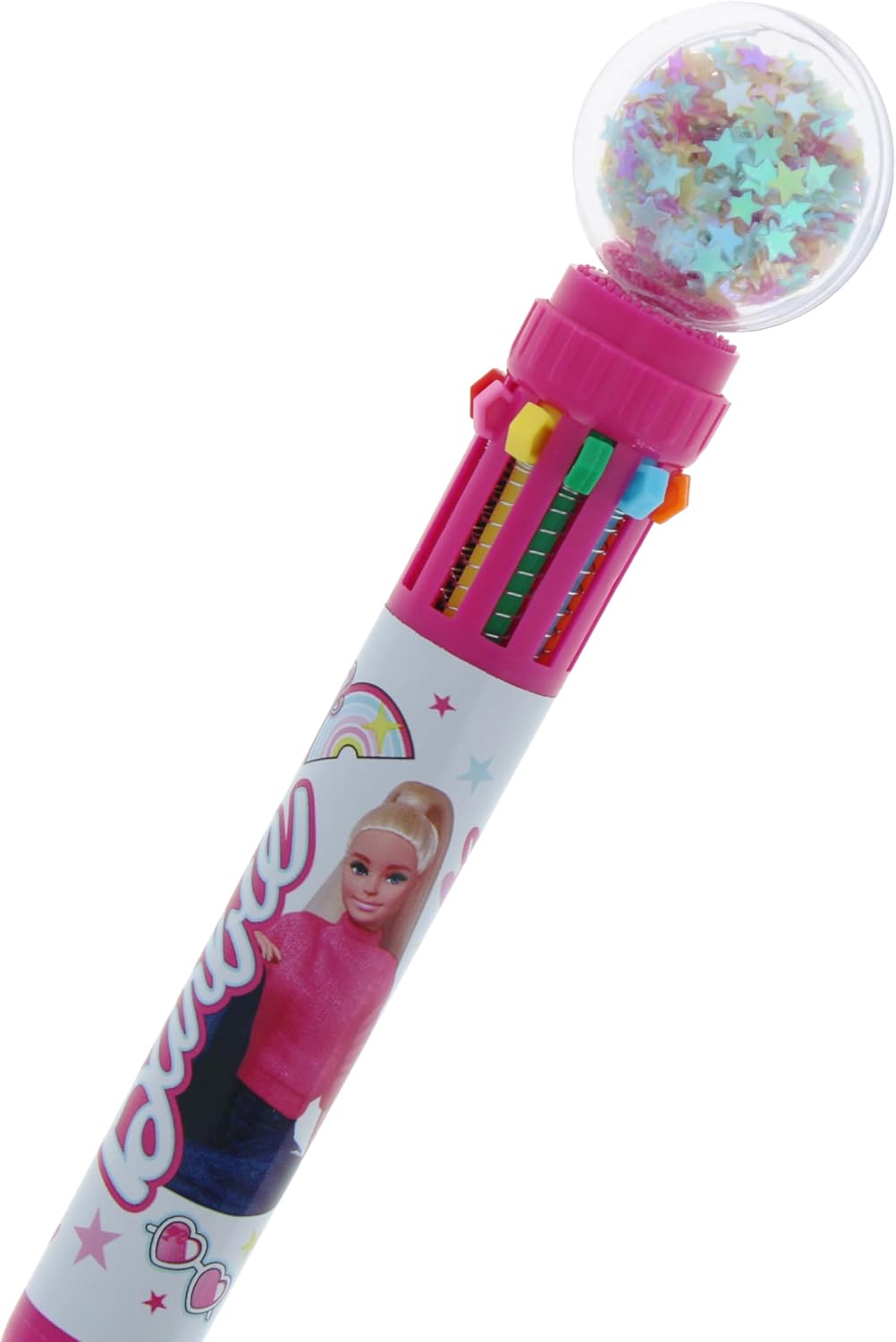Contenuto: questa penna Barbie a 10 colori presenta una vasta gamma di colori vivaci tra cui verde, giallo, azzurro, arancione, viola, blu scuro, rosa, rosso, marrone e nero, fornendo versatilità creativa per tutte le tue esigenze di scrittura e disegno. ❤ Nuovo design: eleva la tua collezione di cancelleria con questa penna Barbie a 10 colori, che vanta un elegante topper ornato con paillettes a stella che aggiungono un tocco di glamour e divertimento alla tua esperienza di scrittura. Pratico: con dieci colori in una comoda penna, è facile passare da una tonalità all'altra per prendere appunti, diario, codifica a colori o creazioni artistiche, rendendolo uno strumento essenziale per scuola, ufficio o uso domestico. ❤ Ottimo regalo: sia per gli appassionati di Barbie, gli amanti della cancelleria o le menti creative di tutte le età, questa penna a 10 colori Barbie è un regalo delizioso e pratico, perfetto per compleanni, vacanze o occasioni speciali. ❤ Licenza ufficiale: prodotta da Blueprint Collections, questa penna Barbie a 10 colori è ufficialmente autorizzata, garantendo autenticità e qualità, e rendendola un must da collezione per i fan di Barbie e gli appassionati di cancelleria.