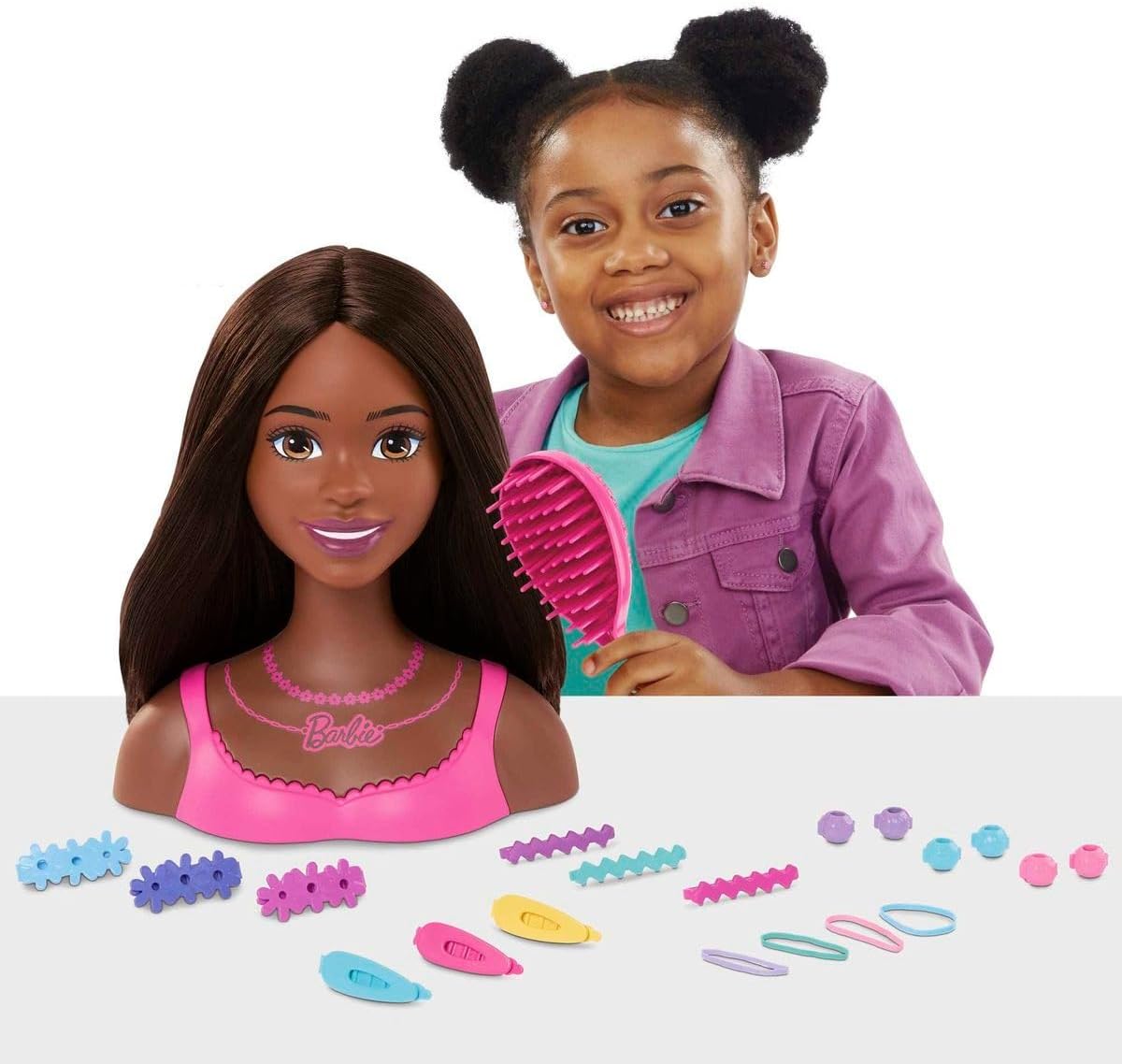 Ispira la creatività con questa testa Barbie Doll Styling Head! Ore di divertimento per lo styling dei capelli e innumerevoli look ti aspettano quando i bambini usano la loro immaginazione con i 20 accessori inclusi. Barbie La bambola ha capelli castani lisci e un design ispirato alla collana sul colletto. Dagli aggiornamenti chic e trecce ai look decorati con colori, il potenziale di stile è infinito. Accessorio con tre fermagli classici, tre fermagli a zigzag, tre fermagli a fiore, sei perline per capelli e quattro elastici per capelli. Dopo aver completato un capolavoro di capelli, utilizzare il pennello incluso per pettinare e ripetere per ore di divertimento styling! Barbie le teste per lo styling incoraggiano i bambini a diventare creativi ed esprimere la loro sensibilità artistica, facendo regali deliziosi! Ciascuno venduto separatamente, soggetto a disponibilità.