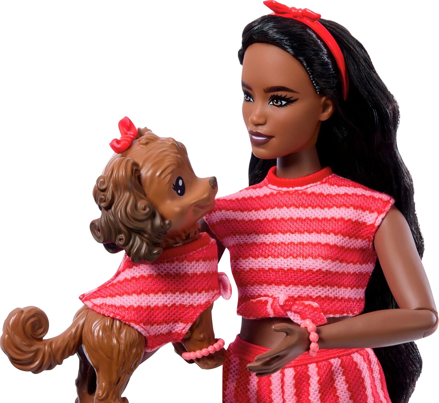 Parla della pelliccia dei migliori amici di tutti i tempi! Con il set Barbie Twinning Looks le bambole Barbie e i loro simpatici cani da compagnia si vestono in abiti coordinati La bambola Barbie e il suo cucciolo si adattano perfettamente a strisce rosse ondulate Barbie indossa scarpe da ginnastica bianche e un set in due pezzi con un dettaglio annodato che è un riflesso della cravatta sulla parte superiore del suo cucciolo! Fortunatamente, i loro accessori vengono consegnati anche in due set! Stile duo con occhiali da sole occhi di gatto, fiocchi di capelli rossi e bracciali color pesca. Accessori coordinati come un collare di pesca e un guinzaglio, nonché una fotocamera gialla per la bambola e una borsa per fotocamera gialla per il vostro cucciolo, contribuiscono al divertimento dei gemelli e delle storie. Dopo aver vestito sia la bambola Barbie che il suo cane da compagnia in un look gemello, metti la scena assemblandola in posizioni divertenti: Barbie ha articolazioni pieghevoli per questo tipo di gioco realistico Le bambole Barbie Twinning Look sono un ottimo regalo per bambini dai 3 anni in su, soprattutto per coloro che amano immaginare storie di animali domestici e diventare creative con la moda