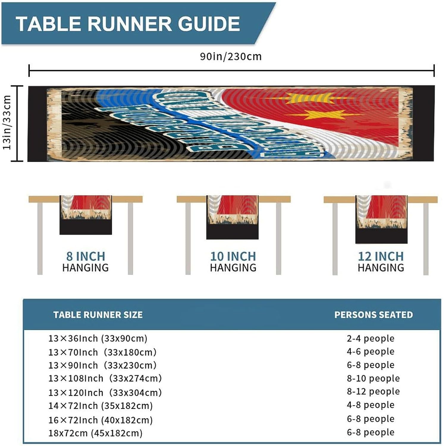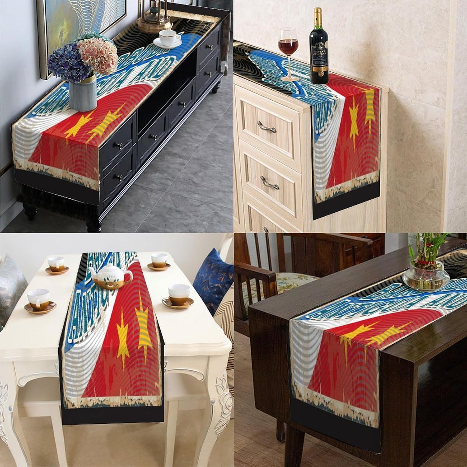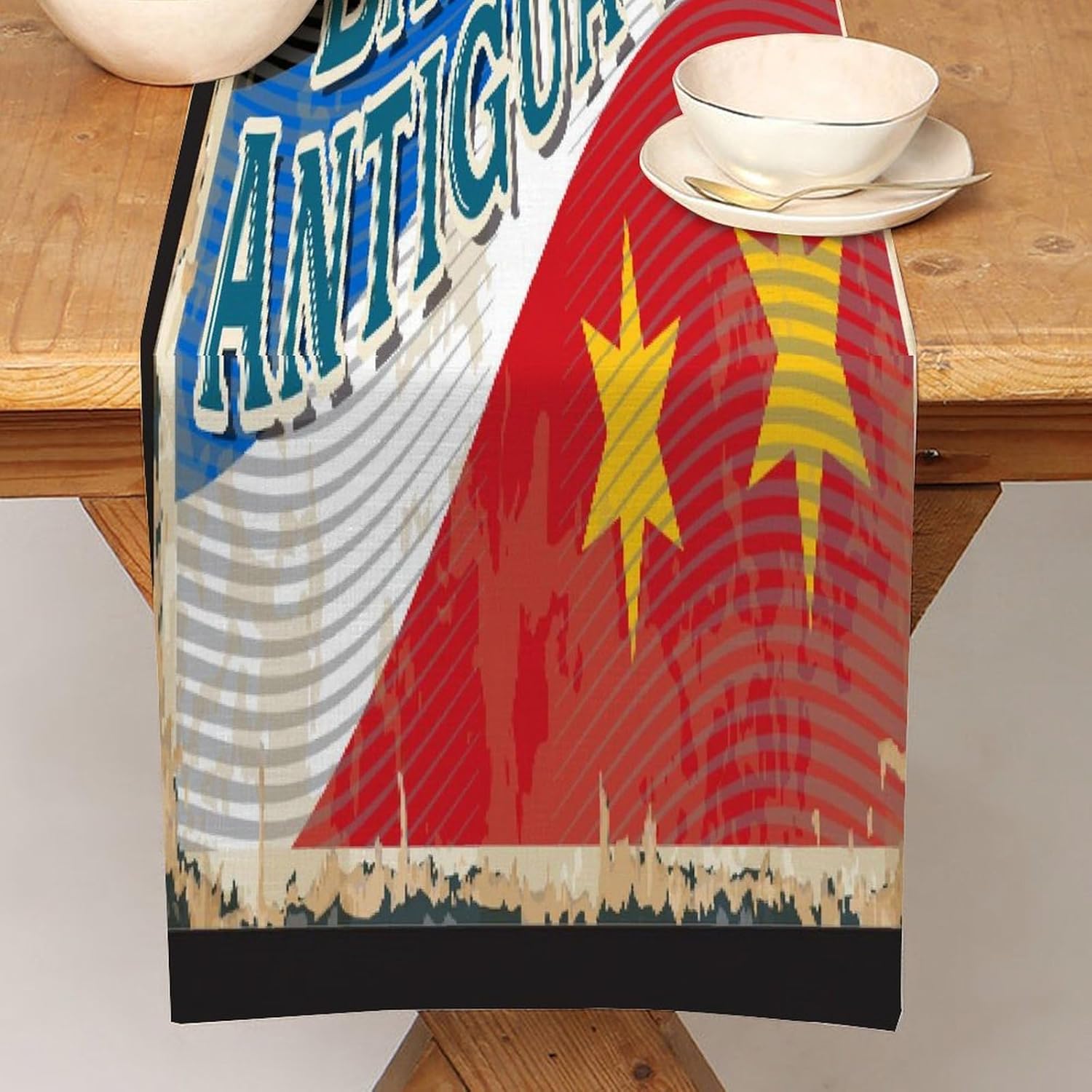 Barbuda Antigua e bandiera Runner da tavola Barbuda Antigua e tavolino da caffè, decorazione da tavolo per cucina, tavolo da pranzo, decorazione per la casa, feste, 33 x 228 cm