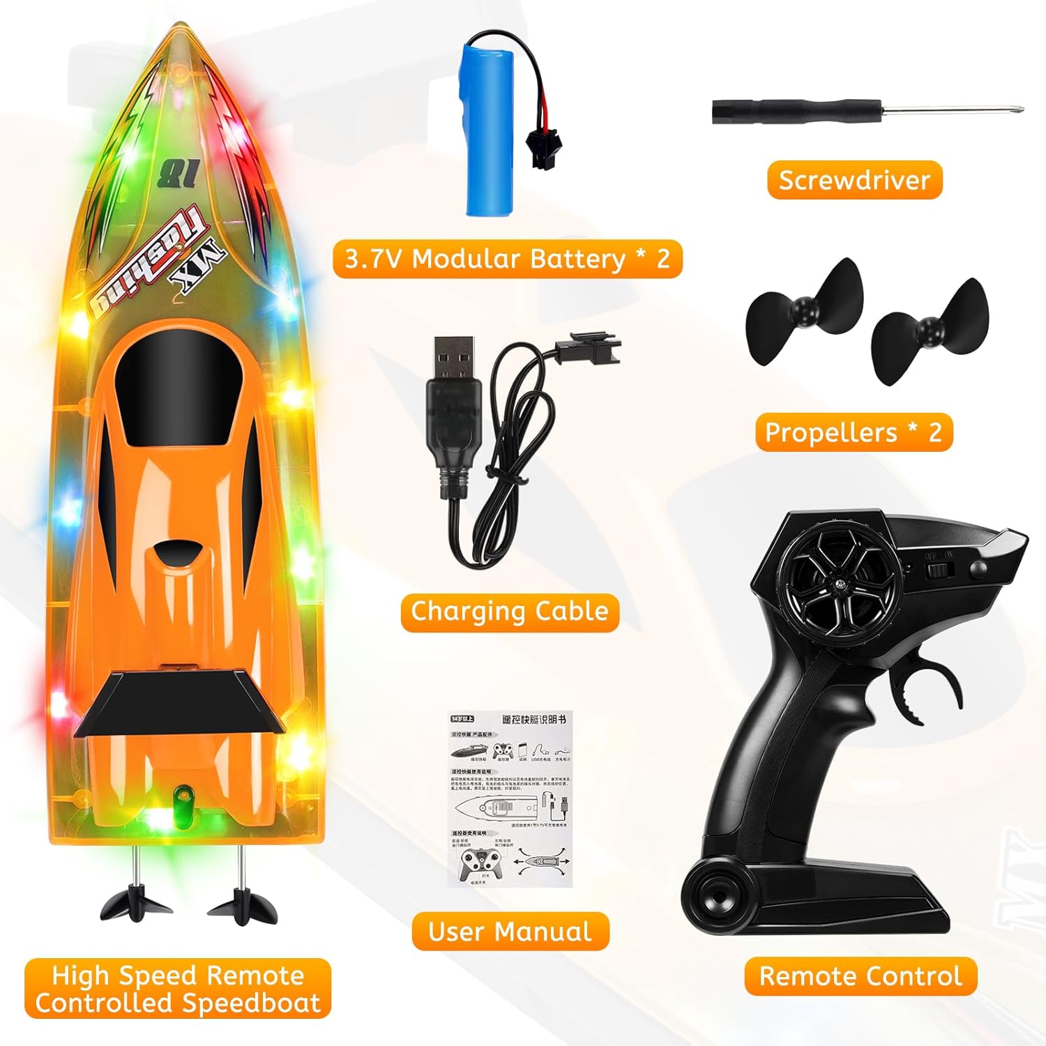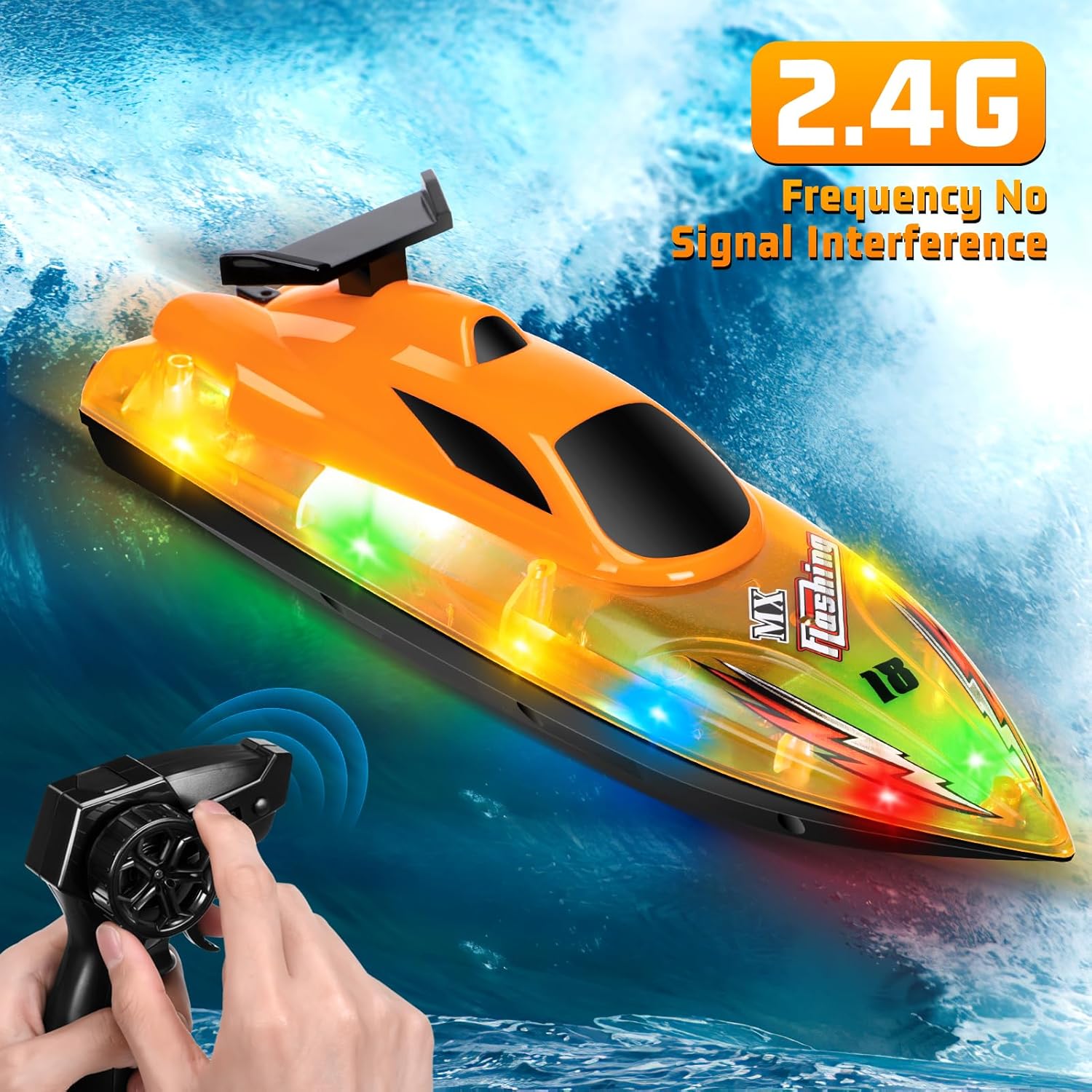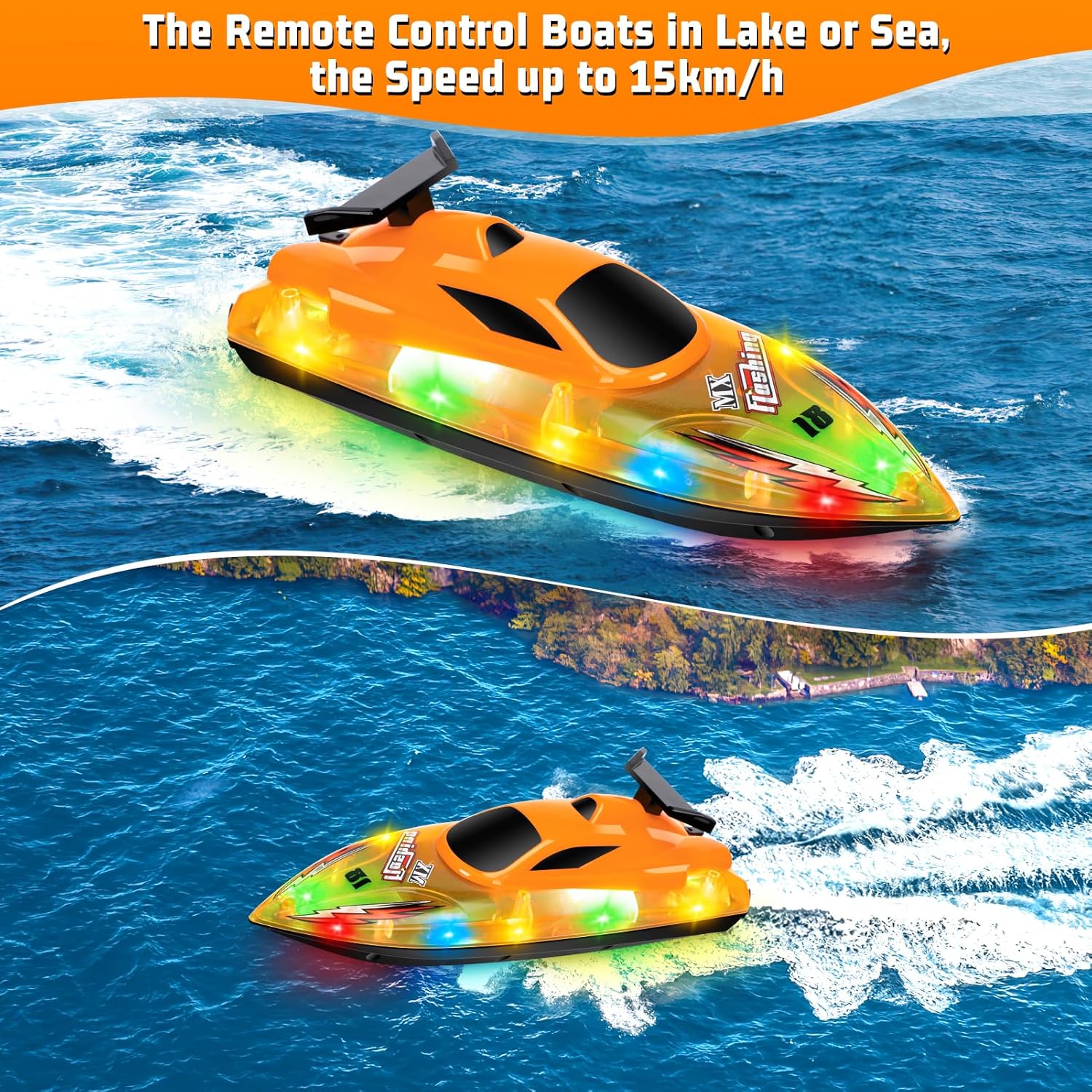 【Barca telecomandata ad alta velocità】La barca elettrica impermeabile è alimentata da due eliche a trasmissione magnetica raffreddate ad acqua, raggiungendo velocità fino a 15 km/h. Il controller di frequenza a 2,4 GHz, preciso e sensibile, consente di controllare senza sforzo la velocità e la direzione della barca. La barca telecomandata può anche eseguire rotazioni di 180 gradi e capovolgimenti automatici, in modo che la barca rimanga in gioco anche in caso di capovolgimento. 【Materiali di alta qualità】La barca radiocomandata è realizzata in plastica ABS di alta qualità e resistente, che può ridurre efficacemente la resistenza e lo scafo ha una forte resistenza agli urti. La guarnizione in EVA completamente chiusa impedisce l'ingresso di acqua e protegge le parti interne. Dotata di luci a LED per illuminare le tue corse notturne, il divertimento non si fermerà al tramonto, aumentando la sicurezza della navigazione. Il motore si avvia solo quando viene rilevata acqua, proteggendo così il motore e prolungandone la durata. 【Design elegante e raffinato】Il telecomando intelligente della barca ha un design elegante e adotta un motore a doppio timone con tecnologia di alimentazione a ciclo d'acqua, che non causa surriscaldamento e garantisce un elevato risparmio energetico. La barca telecomandata per bambini è dotata di un robusto motore a doppio timone ad alimentazione forzata e di una copertura impermeabile a spirale rinforzata. Il segnale ad alta frequenza supporta il gioco multipiattaforma e non interferisce con gli altri. 【Avviso di bassa tensione e distanza eccessiva】La barca telecomandata è dotata di 2 batterie ricaricabili con una capacità di 3,7 V 500 mAh, che possono durare circa 30 minuti dopo una ricarica di 2 ore. Quando la batteria è scarica, la velocità della barca rallenta e la spia del controller lampeggia con un segnale acustico. Quando il motoscafo sta per superare i 60 metri dal telecomando wireless, anche la spia del controller lampeggerà con un segnale acustico. Si prega di regolarla in tempo per evitare di non riuscire a tornare indietro. 【Regalo estivo ideale】 La barca elettrica telecomandata è disponibile in una bellissima confezione regalo. È una meravigliosa scelta regalo giocattolo per compleanni, festival o molte altre occasioni. L'aspetto grazioso e il design portatile la rendono adatta ad adulti, ragazzi e ragazze per giocare in piscine, laghi, fiumi, aggiungendo divertimento e sbarazzandosi della noia. È un regalo fantastico. Preparati a iniziare il divertimento estivo con questa fantastica barca telecomandata!