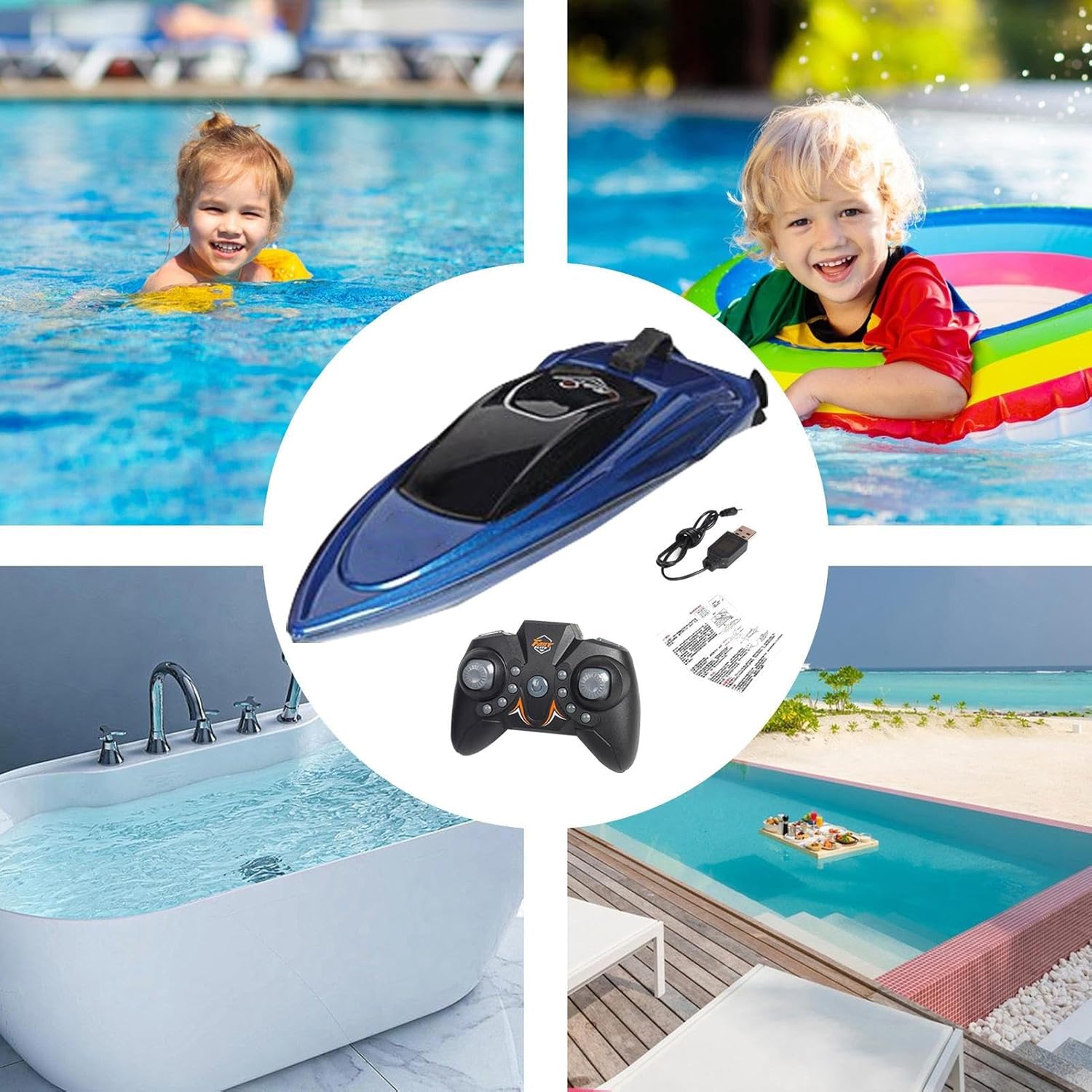 Proprietà impermeabile: realizzata con un corpo ABS infrangibile e progettata per resistere a eventuali condizioni meteorologiche, questa barca a telecomando garantisce una maggiore eccitazione acquatica in piscine, laghi o persino nella vasca da bagno Divertimento di gruppo ininterrotto: le prestazioni ottimizzate della batteria supportano fino a 12 minuti di navigazione continua per più gioia da corsa. Il design RC multicanale consente a più barche di correre contemporaneamente, offrendo forti corse di e un'esperienza di gruppo entusiasmante con familiari e amici Maneuvabilità di precisione: goditi il divertimento ininterrotto con la nostra barca a velocità di controllo telecomando con un indicatore a bassa batteria e ricarica USB per una facile gestione 'alimentazione. Include anche controlli reattivi e un di rilevamento 'alimentazione di sicurezza per manovre sicure e precise sull'acqua Più divertimento 'acqua: porta più eccitazione al tuo gioco d'acqua con questa barca compatta di controllo remoto. Ideale per vasche da bagno per interni e piscine per bambini, rendendo ottimo per l'intrattenimento estivo per i bambini di tutte le età. Con una vasta gamma di usi, è la barca RC ideale per adulti e bambini Precisione migliorata: adotta il di controllo radio a 2,4 GHz, la nostra barca di controllo remoto RC da 2,4 g minimizza le interferenze e garantisce una trasmissione del segnale stabile, consentendo un controllo preciso