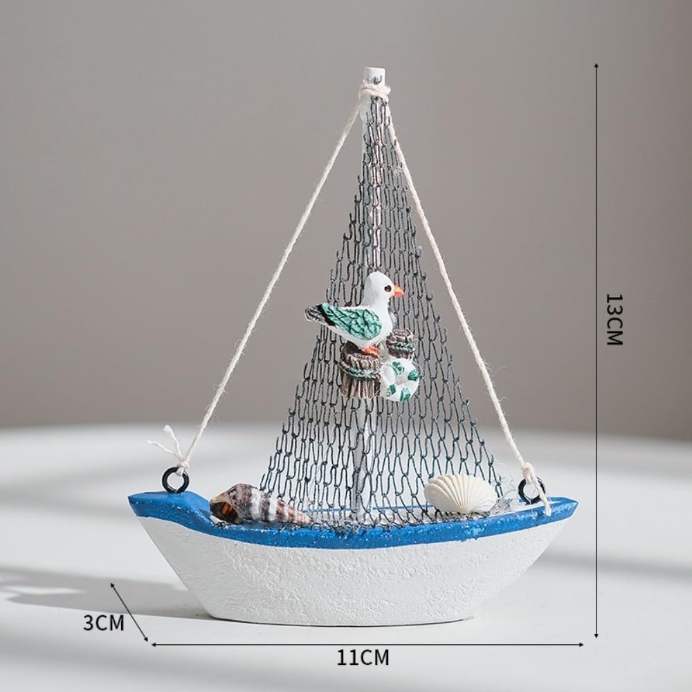 Materiale unico: lo scafo è realizzato in legno selezionato di alta qualità, decorato con maglia fine e elementi decorativi come conchiglie e corde. La ricca trama trasuda un tocco marittimo, e ogni dettaglio dimostra l'ingegno. Dimensioni squisite: circa 11 cm di lunghezza e circa 13 cm di altezza. Piccolo ed elegante, occupa poco spazio e si posiziona facilmente su una scrivania, un tavolino o una finestra. Multifunzione: l'esclusivo modello di barca a vela in legno fatto a mano è adatto a qualsiasi arredamento marittimo, soggiorno, ufficio, ecc. È un'ottima decorazione per banchetti, feste e matrimoni. Decorazione perfetta da scrivania: i colori principali blu e bianco creano un fresco stile marittimo. Rete, stelle marine, timoni e altri elementi sono sapientemente abbinati per dare alla scrivania un tocco di stile marittimo e sottolineare lo stile della stanza. Regalo perfetto: questo modello di barca a vela è un'ottima decorazione per la tua casa e perfetto per chi ama lo stile marittimo. La barca a vela ha un significato bellissimo, rappresenta la vela tranquilla e la felicità.