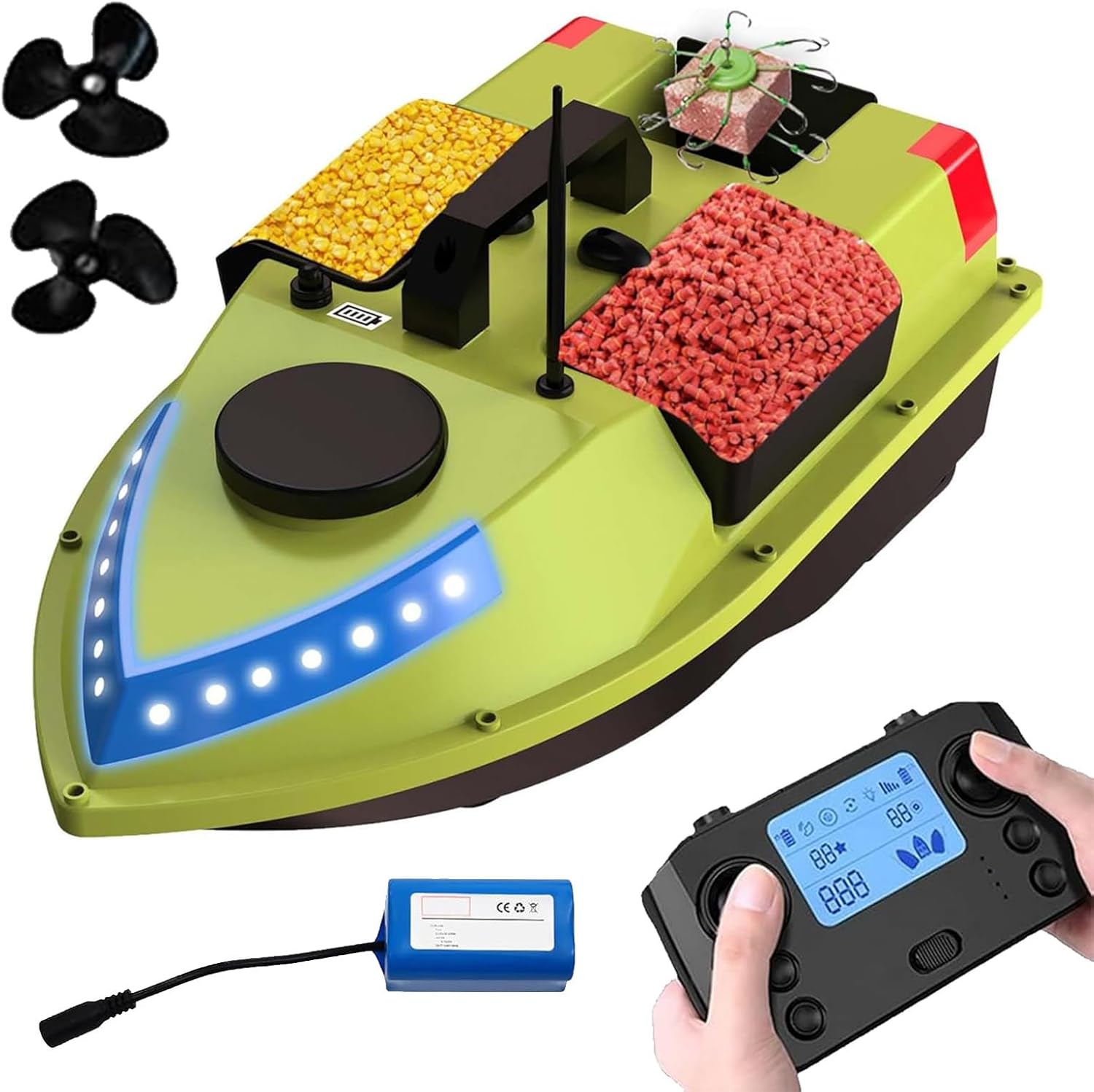 (Contenitore indipendente per esche per pesci): la barca per esche RC è dotata di 3 contenitori per esche controllati in modo indipendente che possono assorbire 2,0 kg di esche diverse come saldature di mais, esche a pellet ed esche miste ecc. Ciò semplifica il trasporto di ami e reti da pesca e migliora notevolmente l'efficienza della pesca. (Barca mangiatoia intelligente): la barca mangiatoia per pesci è dotata di potenti motori doppi e doppie eliche. Puoi controllare efficacemente la direzione della barca tramite il telecomando GPS e far cadere l'esca esattamente nel punto focale entro 500 m. Crociera automatica con un solo pulsante a velocità costante, in caso di perdita di segnale o batteria scarica, la barca ritorna automaticamente alla posizione originale dopo 15 secondi. (Illuminazione a LED): il Fischkader Boot ha 1 luce LED bianca e 2 luci blu del display, che possono determinare chiaramente la posizione della barca e posizionare l'esca con precisione, il che è molto adatto per gli amici pescatori che praticano la pesca notturna alla carpa. (Fusoliera completamente chiusa): il motoscafo impermeabile è realizzato in materiale ABS, che ha una forte resistenza agli urti e all'abrasione. La fusoliera aerodinamica può ridurre la resistenza al vento e ha una messa a fuoco stabile. È adatto per attività di pesca in varie acque come stagni, fiumi e laghi. (Batteria al litio ad alte prestazioni): la barca feeder è azionata da una batteria da 5200 mAh. Può essere caricato separatamente ed è facile da installare. Dopo ogni caricamento completo, la barca con esca può essere utilizzata per circa 2-3 ore, il che è molto adatto per le carpe.