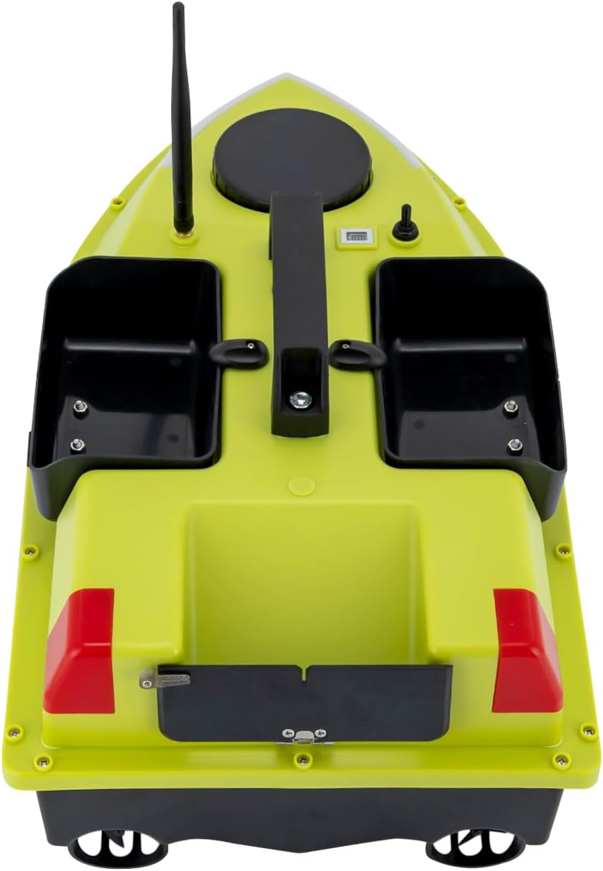 Stabile e durevole: l'esca RC 600M è realizzata in materiale ABS di alta qualità con lavorazione a sabbiatura. È antigraffio, impermeabile e resiste all'usura e alla corrosione. Ciò garantisce una lunga durata e un utilizzo affidabile in diversi scenari di pesca. Potente ed efficiente: con due motori da 390 e 52 Watt di potenza, l'esca raggiunge una velocità massima di 10.000 giri/min e una velocità di guida di 1,8 m/s. I tre contenitori possono contenere fino a 2 kg di esche, come mais, mangime e riccioli artificiali, offrendo così un'esperienza di pesca precisa ed efficiente. Visione notturna: l'esca radiocomandata da 600 m è dotata di fari di navigazione a LED e di una barra luminosa regolabile manualmente. Consentono una visione chiara della barca con esche e la direzione anche durante la pesca notturna. Controllo preciso e sicurezza: l'esca RC da 600 m dispone di uno scafo impermeabile che aumenta la stabilità e impedisce l'aggrovigliamento delle piante. Correzione automatica del corso, la perdita di connessione e l'allarme della batteria garantiscono un utilizzo sicuro su aree d'acqua aperte. Pratico e durevole: con una portata di 600 m e un display LCD per il monitoraggio della batteria, del segnale GPS e di altri dati, la barca con esche RC 600M è ideale per uso esterno. Le 2 batterie agli ioni di litio da 5200 mAh offrono una durata fino a 90 minuti per carica, consentendo una pesca per un'intera giornata.