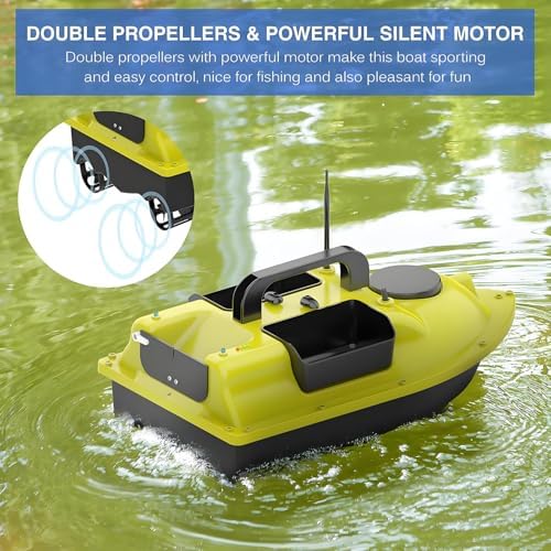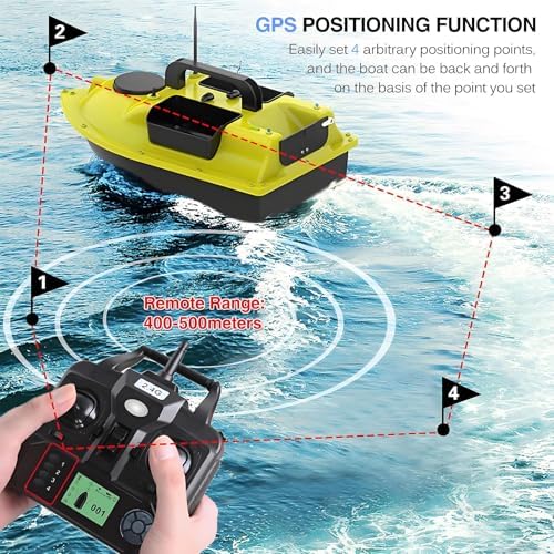 Funzionamento fluido e silenzioso: progettata per la furtività, questa barca da esca si muove in modo fluido e silenzioso sull'acqua per evitare di sorprendere i pesci, garantendo una battuta di pesca di successo. Controllo a lunga distanza: con un sistema RC 2.4G che offre una portata di 400-500 iarde, i pescatori possono posizionare facilmente la barca nel punto di pesca ideale per risultati ottimali. Durata prolungata della batteria: una batteria da 7,4 V 10.000 mA alimenta l'imbarcazione fino a 5 ore, fornendo ampio tempo per la pesca senza frequenti interruzioni di ricarica. Navigazione GPS avanzata: dispone di un sistema GPS avanzato in grado di contrassegnare fino a 4 punti di navigazione, semplificando il posizionamento delle esche e migliorando l'efficienza della pesca. Funzione di sicurezza di ritorno automatico: dotata di una funzione di ritorno automatico, la barca garantisce il ritorno quando la batteria è scarica, il segnale viene perso o esce dalla portata, prevenendone la perdita.