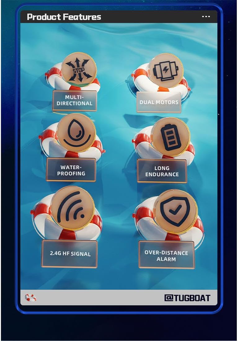 Turbojet Speed Thrills: dispone di un sistema di pompaggio in stile turbogetto che spinge la barca fino a 8 km/h, offrendo emozionanti esperienze di corse acquatiche sia per principianti che per hobbisti. Controllo senza interferenze da 2,4 GHz: il telecomando avanzato a 2,4 GHz consente una trasmissione stabile del segnale fino a 50 metri: più barche possono correre contemporaneamente senza interferenze di segnale. Design di navigazione realistico: l'elica potente e il timone flessibile forniscono uno sterzo preciso. L'acceleratore regolabile consente di controllare facilmente la velocità, ideale per tutti i livelli di abilità. Lunga durata e avvisi intelligenti: include una batteria al litio ad alta capacità sostituibile con ricarica USB, avvisi di batteria scarica e motore raffreddato ad acqua per ridurre il calore e prolungare la durata del motore. Impermeabile e protetto dagli urti: la copertura completamente sigillata con serrature a torsione e il paraurti anteriore protegge contro il capovolgimento, mentre il design autoregolante garantisce il ripristino automatico dopo il capovolgimento.