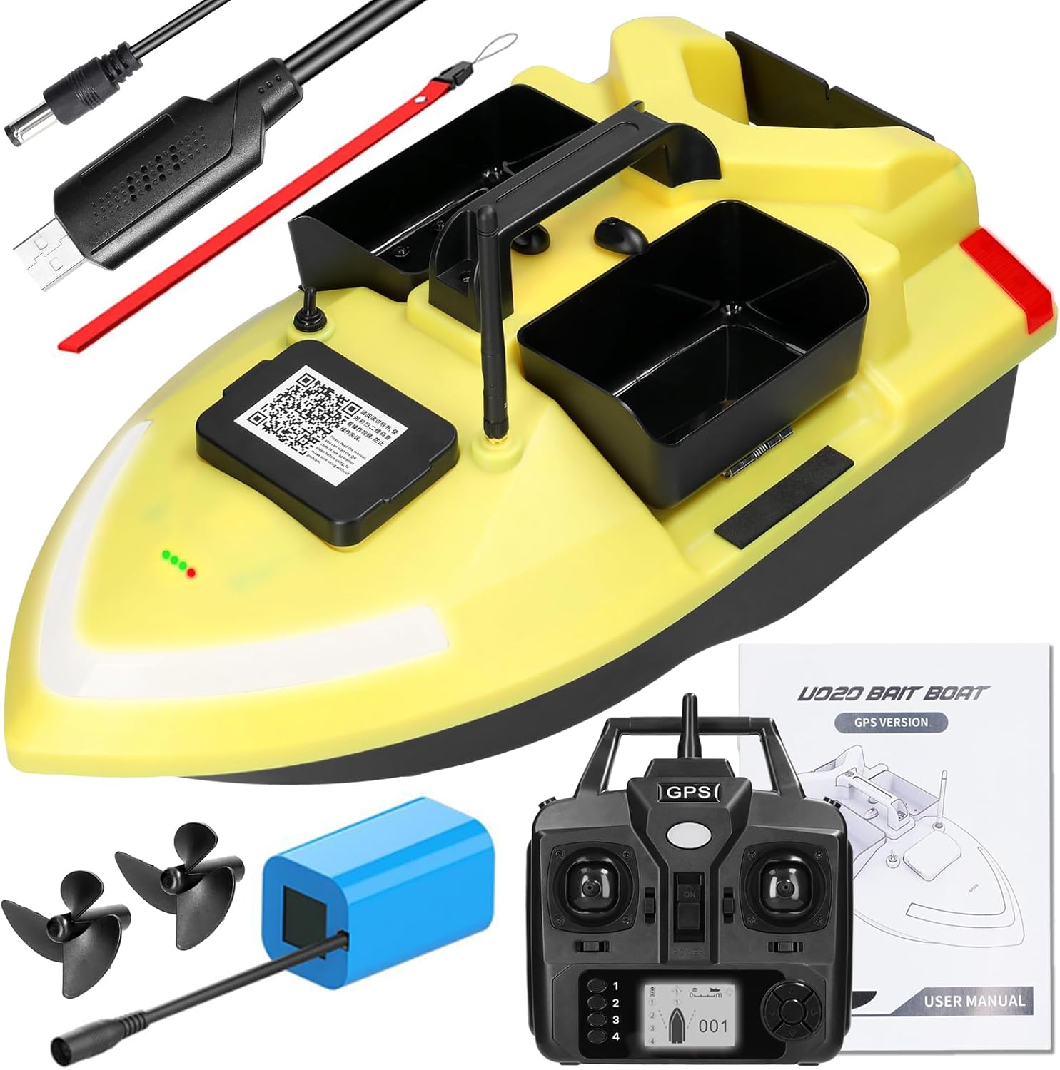 (Radiocomando da 500 m): la barca con esca ha una funzione di crociera GPS. in modo che la barca possa andare avanti a velocità costante, risparmiando tempo ed energia. La barca a motore è dotata di uno strumento a spirale a 3 assi per garantire che la barca calibri automaticamente la rotta durante la navigazione per evitare un'imbardata eccessiva dovuta al vento e alle onde durante la navigazione. (Fishing Feeder Boat): la barca da pesca intelligente utilizza una funzione di crociera automatica per portare esche e ami per la pesca o posizionare esche nelle profondità del lago. Per gli appassionati di pesca, questo riserva spesso sorprese inaspettate. È la scelta ideale per i pescatori. (Eccellente progettazione dettagliata): 1. La barca a motore ha due motori e due eliche per conferire alla barca prestazioni potenti. 2. La barca da esca è dotata di luci per la visione notturna, quindi puoi vedere bene la barca anche di notte da una lunga distanza. 3. La barca alimentatore è realizzata in materiale ABS, sicuro ed ecologico. Guscio aerodinamico, forte resistenza agli urti e resistenza all'abrasione. (Contenitore per esche di grande capacità): la barca per esche è dotata di 3 contenitori per esche in cui è possibile caricare un totale di 2,0 kg di esche. Il telecomando può controllare in modo indipendente l'apertura del contenitore dell'esca. Mettendo l'esca nel lago si attirano molti pesci. Inoltre, il gancio può essere appeso ai contenitori delle esche per evitarne la caduta. (Batteria al litio ricaricabile): il motoscafo è alimentato da una batteria al litio ricaricabile da 5200 mAh. Può essere caricato separatamente ed è facile da installare. Dopo ogni carica completa, la barca con esca può essere utilizzata per circa 2-3 ore, il che è molto adatto per la pesca alla carpa.