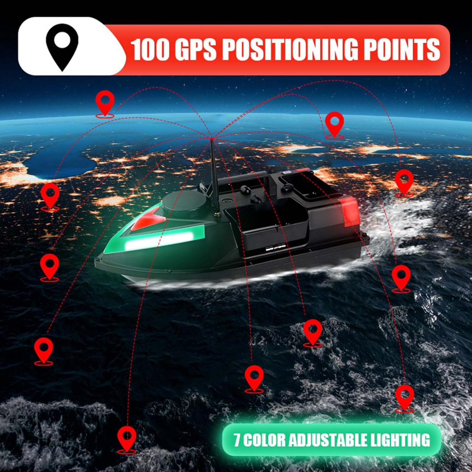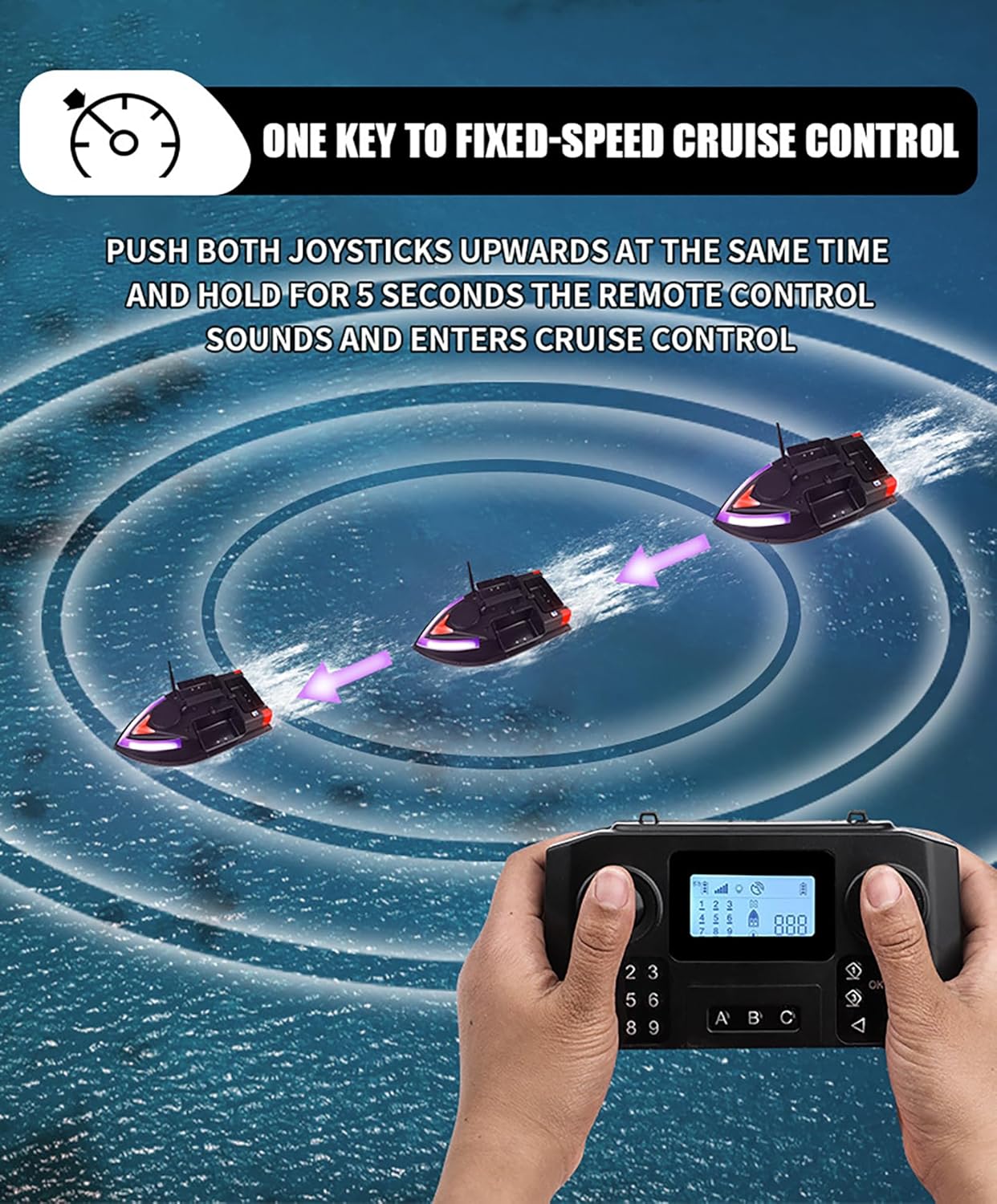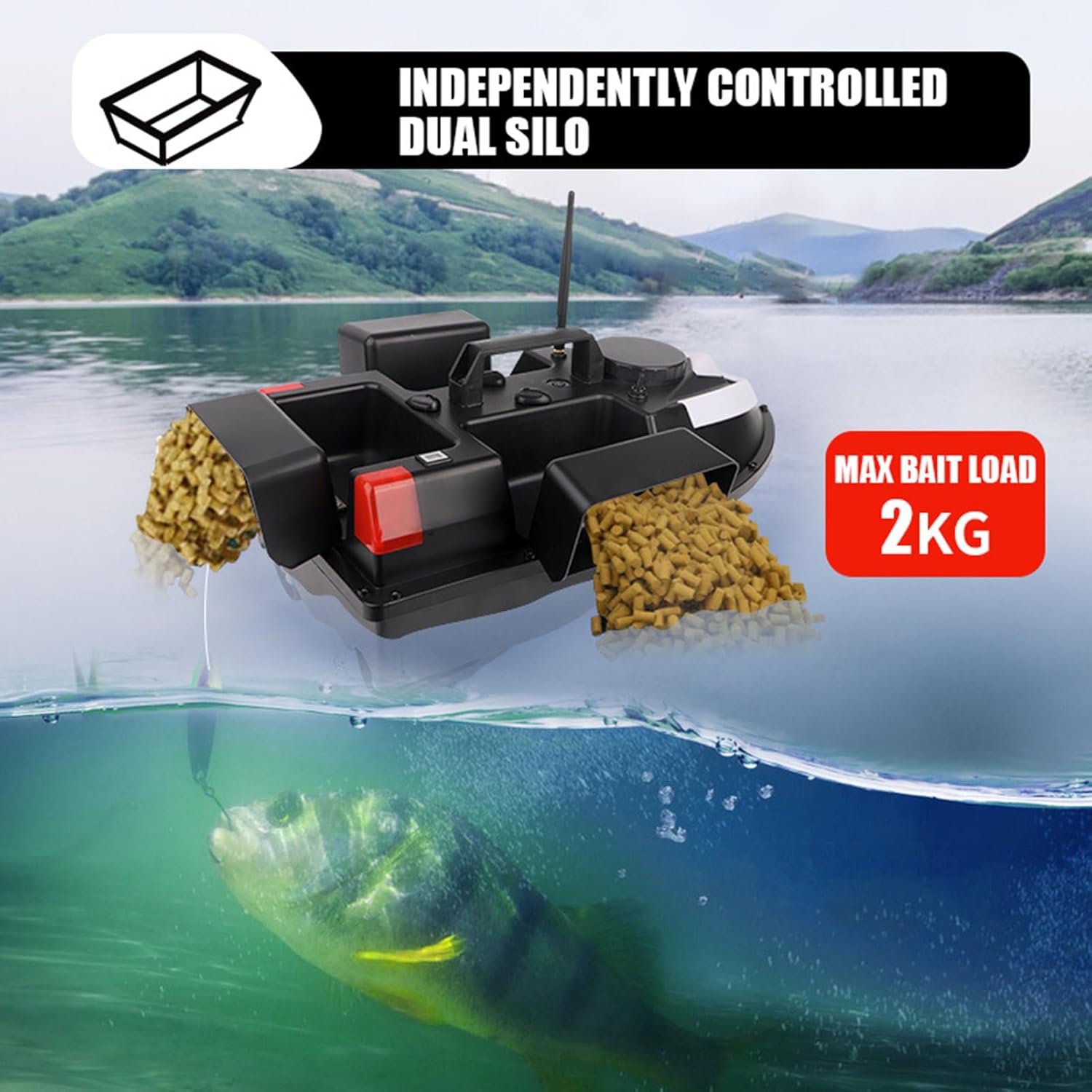 Controllo a lungo raggio: il telecomando dell'imbarcazione ha una portata notevole fino a 500 m, offrendoti una portata estesa e riducendo le limitazioni operative per un'esperienza di pesca più fluida. Stabilità migliorata: i doppi motori con correzione giroscopica garantiscono una navigazione stabile e regolazioni rapide, anche in condizioni ambientali difficili come vento e onde, migliorando la precisione della tua esca. Conservazione delle esche ad alta capacità: con una capacità totale di esche fino a 1 kg in tre scomparti, puoi trasportare abbastanza esche per ridurre le ricariche frequenti, rendendo le tue sessioni di pesca più efficienti. Crociera GPS automatica: imposta fino a 100 waypoint GPS e la barca può navigare automaticamente verso le posizioni designate, liberando le mani per altre attività e garantendo un posizionamento preciso dell'esca. Design impermeabile e aerodinamico: progettata per essere completamente impermeabile e aerodinamica, questa barca da pesca può funzionare senza problemi anche in condizioni meteorologiche avverse, come pioggia o nebbia, garantendo la sua affidabilità in tutte le circostanze.