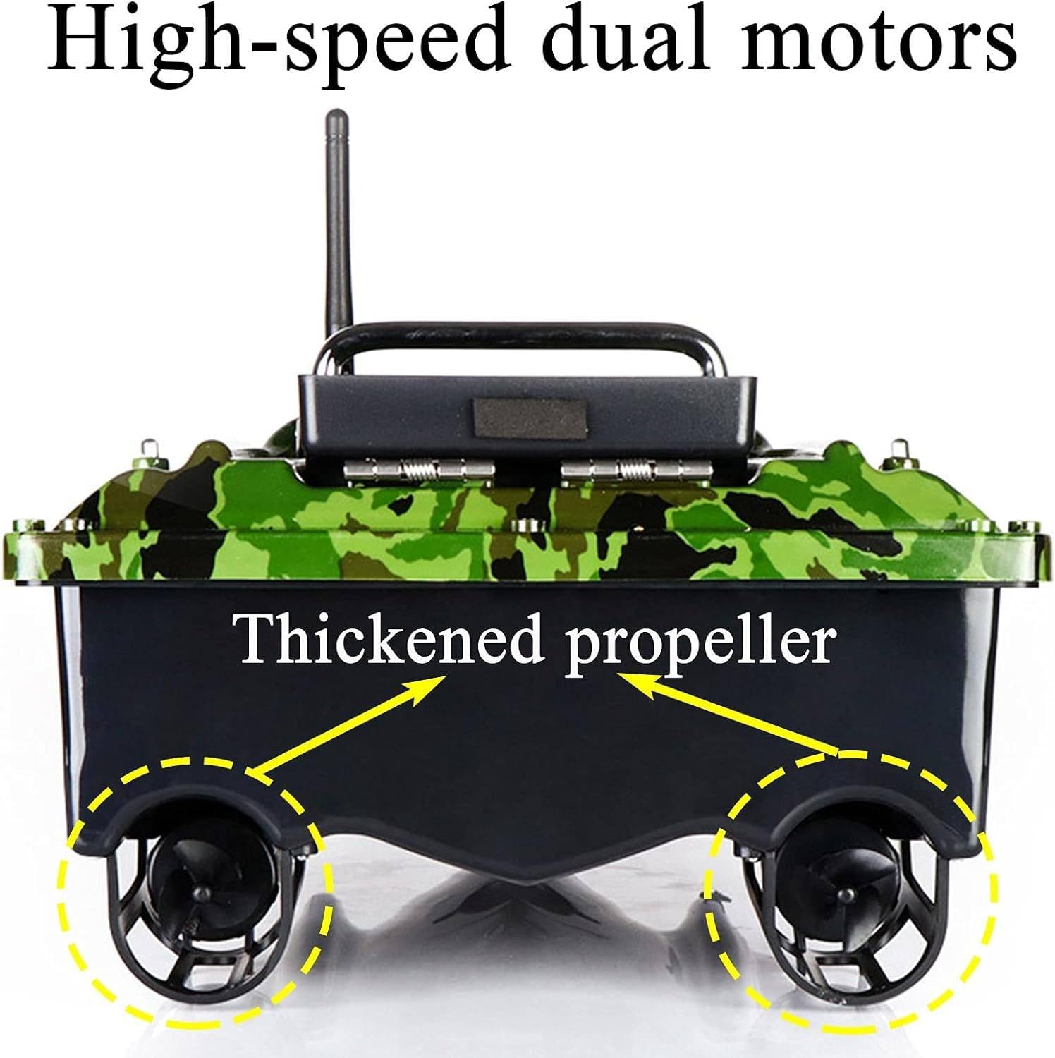 【BAITA CON TELECOMANDO】: Il corpo principale della barca è realizzato in materiale ABS, che presenta una struttura robusta e una resistenza alle crepe, in grado di resistere a forti venti e onde, con un aspetto raffinato, una lavorazione squisita e un design a doppio motore per carichi elevati. 【RICEZIONE DEL SEGNALE A 500 M】: La distanza di controllo remoto della nostra barca può raggiungere circa 500 metri, resistendo a e onde di livello 3-4. Il segnale del telecomando della barca è potente, basta premere il pulsante sul telecomando per controllare la distanza. 【LUCI NOTTURNE A LED PER LA PESCA】: La barca è dotata di luci notturne a LED ad alta luminosità integrate che migliorano la visibilità e attirano i pesci in condizioni di scarsa illuminazione o di notte, facilitando la pesca notturna e consentendo di vedere chiaramente la barca da lontano anche di notte. Rende più precisa la ricerca dei punti di pesca di notte. 【CONTROLLO AUTOMATICO DELLA VELOCITÀ DI CROCIERA】: La funzione di controllo automatico della velocità di crociera della barca esca impermeabile può aiutare la barca a navigare direttamente a una velocità costante e impedirne l'uscita. I doppi motori possono controllare efficacemente la direzione della barca esca. 【BATTERIA A LUNGA DURATA】: È dotato di una batteria al litio da 12000 mAh che offre fino a 3 ore di autonomia continua, offrendoti più tempo in acqua. Questo feeder da pesca con telecomando wireless può trasportare 1,5 kg di esche, rendendo la pesca più facile e comoda.