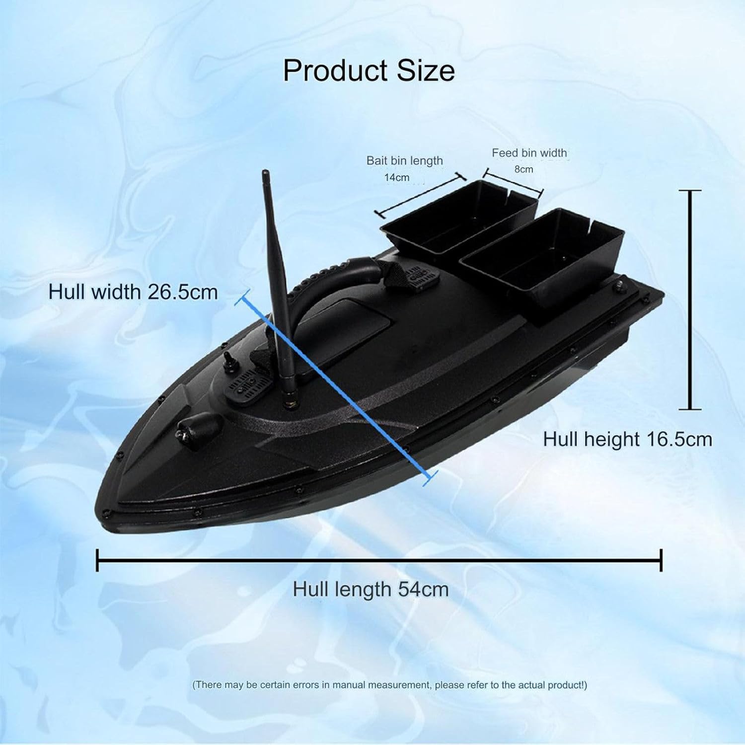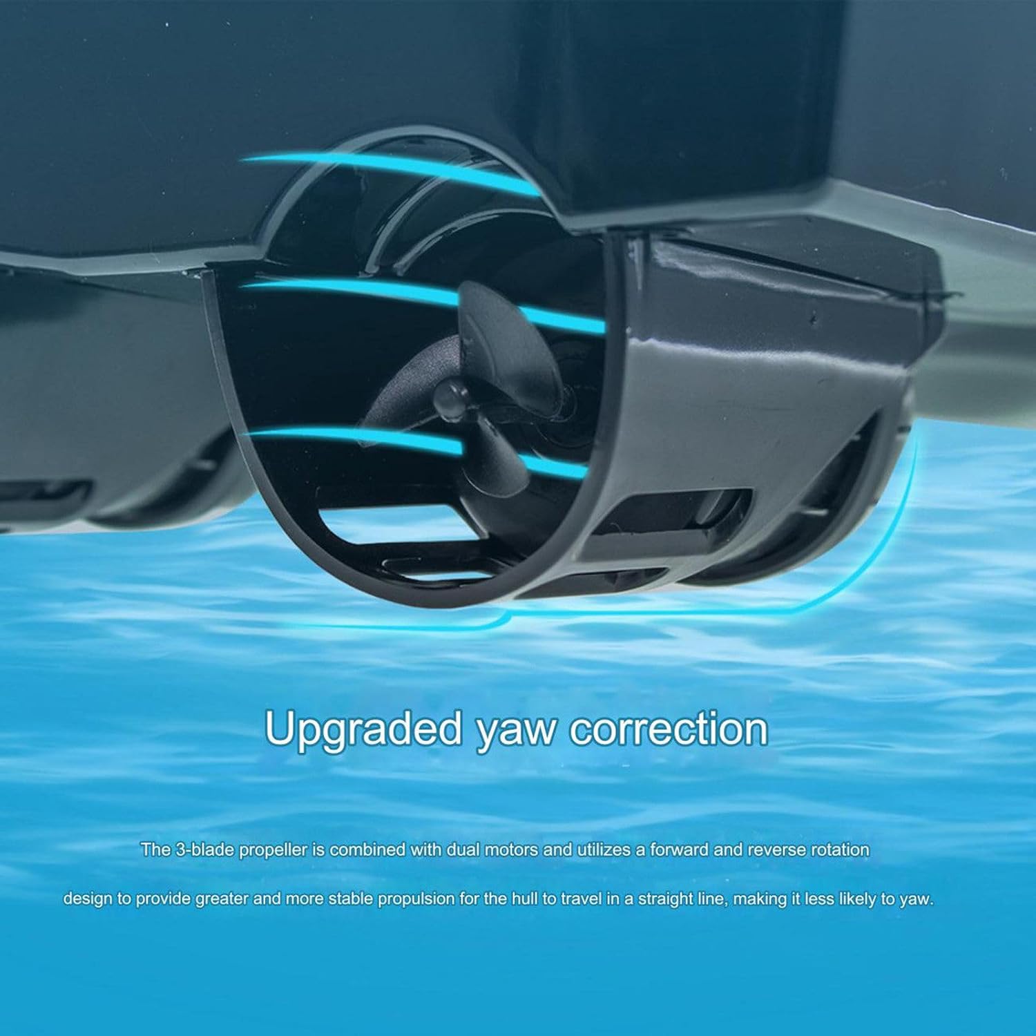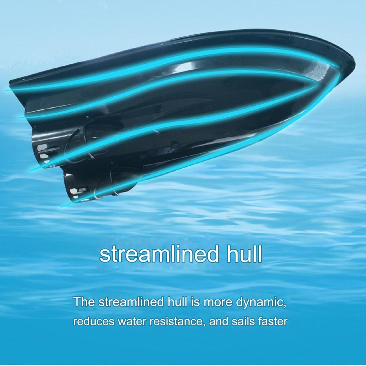 CORREZIONE DELL'IMBARCAZIONE: L'elica a 3 pale è abbinata a due motori e utilizza un design avanti e indietro per fornire allo scafo una forza motrice maggiore e più stabile per il movimento rettilineo, rendendolo meno incline all'imbardata MATERIALE ABS: Il corpo principale dello scafo è stampato a iniezione con materiali ingegneristici ABS, che offrono un'eccellente resistenza agli urti e all'usura, non sono facili da indossare, hanno una forte resistenza ai graffi, sono belli, robusti e stabili. Ottima capacità di resistere a vento e onde. PORTATA DI 500 M: Controllo senza ostacoli entro un raggio di 500 m e segnale del telecomando più stabile. I comandi del telecomando possono essere implementati in un ambiente con portata di 500 metri. Non sei più vincolato dai cavi e puoi goderti liberamente la comodità di una tecnologia senza limiti. Il segnale è ampio e stabile. SCAFO AERODINAMICO: Lo scafo aerodinamico è più in linea con le dinamiche e riduce la resistenza all'acqua, consentendo una maggiore velocità di navigazione. L'effetto di dissipazione del calore del motore è migliorato. La calotta del motore è più grande, l'effetto di dissipazione del calore è migliore e la durata del motore è prolungata.