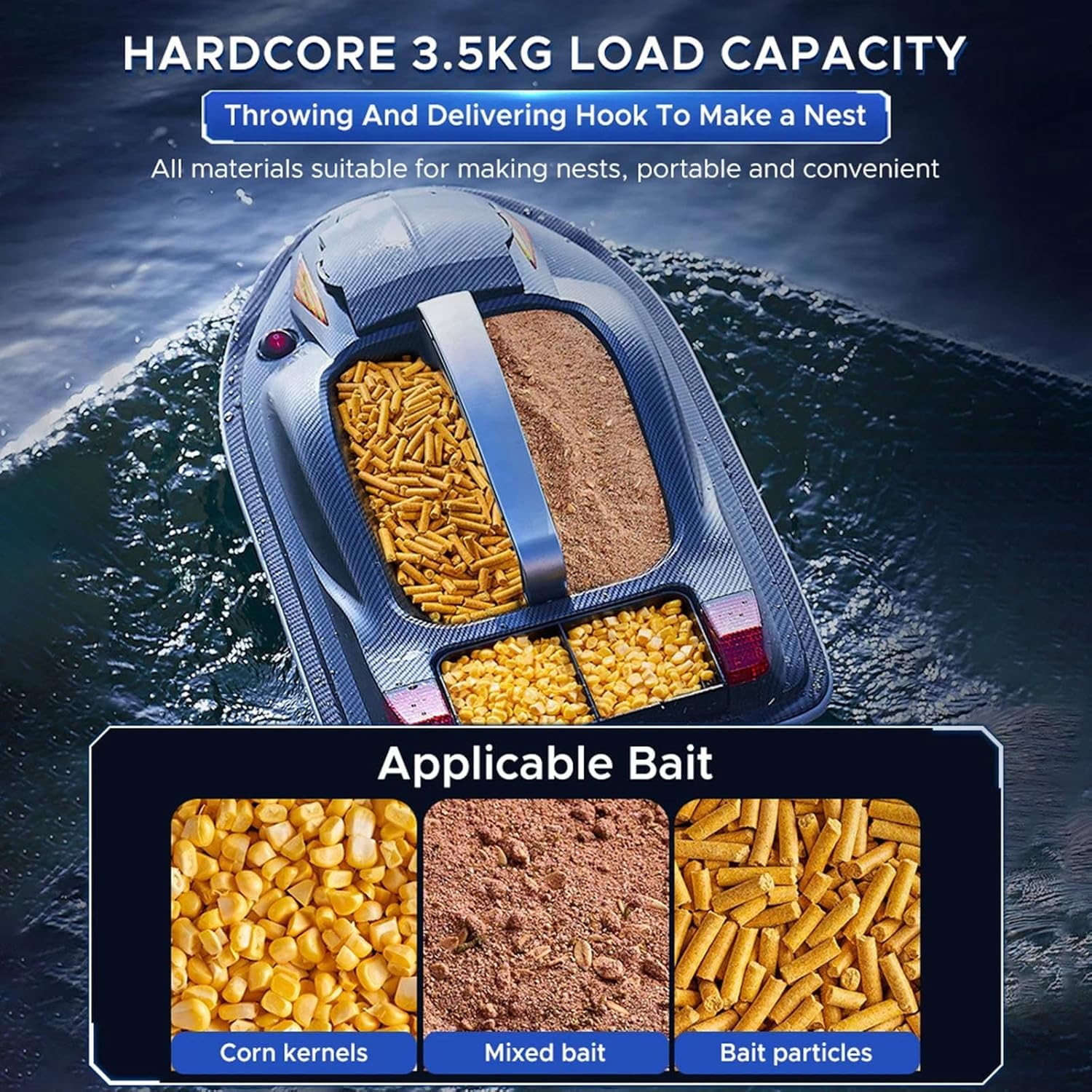 CROCIERA DI CORREZIONE INTELLIGENTE: la crociera di correzione intelligente equipaggiata su questa barca esca può monitorare lo stato di guida della barca in tempo reale. Quando la barca devia dal percorso preimpostato durante la guida, si regolerà automaticamente per garantire che segua sempre la traiettoria dritta impostata verso il punto di pesca bersaglio DESIGN IMPERMEABILE SIGILLATO: adottando un design sigillato, ha buone prestazioni impermeabili e non teme l'erosione dell'acqua. Dopo aver consegnato i materiali, gli utenti possono lavare direttamente la barca di nidificazione con acqua, il che è comodo per pulire e mantenere l'attrezzatura ordinata e igienica, e anche ridurre i danni causati da macchie d'acqua e macchie sull'attrezzatura TRASMISSIONE A LUNGA DISTANZA: ha un raggio di trasmissione del segnale di 500 metri, il che significa che puoi comunque controllare stabilmente la barca esca tramite il telecomando anche se la guidi lontano dalla riva in una vasta area d'acqua AMPIA CAPACITÀ DI CARICO: dotata di tre silos che possono essere aperti e chiusi automaticamente, è in grado di posizionare con precisione esche, ami e altri materiali secondo programmi preimpostati o istruzioni operative. I contenitori controllati automaticamente non solo riducono la noia del lavoro SERVIZIO POST-VENDITA AFFIDABILE: le tue esigenze sono la nostra ricerca. Se hai domande sul prodotto, non esitare a contattarci, forniremo un feedback 24 ore su 24 e lo risolveremo per te il prima possibile