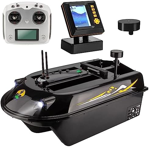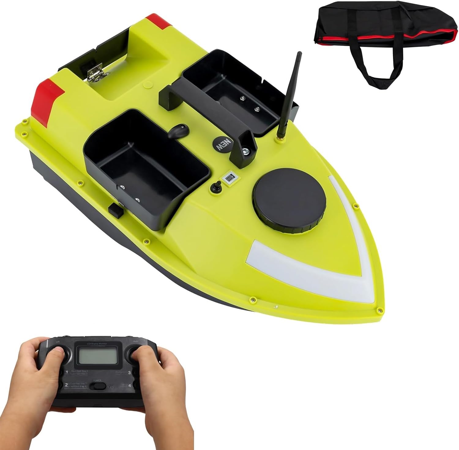 batterie ad alta capacità da 12000 mAh, ciascuna delle quali garantisce fino a 4-6 ore di utilizzo continuo. 【Ganci da trasporto comodi】: Posiziona facilmente esche e ami nei punti ideali. Controlla la barca da remoto entro un raggio di 500 metri. Dispone di ritorno one-touch e crociera automatica per una maggiore praticità. 【Capacità di pesca notturna】: dotato di indicatori LED per una maggiore visibilità notturna, che ti aiutano a navigare con precisione e a lanciare l'esca con facilità. 【Forte ricezione del segnale】: la barca telecomandata vanta una portata del segnale di 300-500 m, anche se questa portata può essere influenzata da ostacoli o interferenze del segnale. 【Design impermeabile per erba】: presenta un design a doppio motore con una copertura impermeabile, che garantisce prestazioni affidabili anche in condizioni di bagnato.
