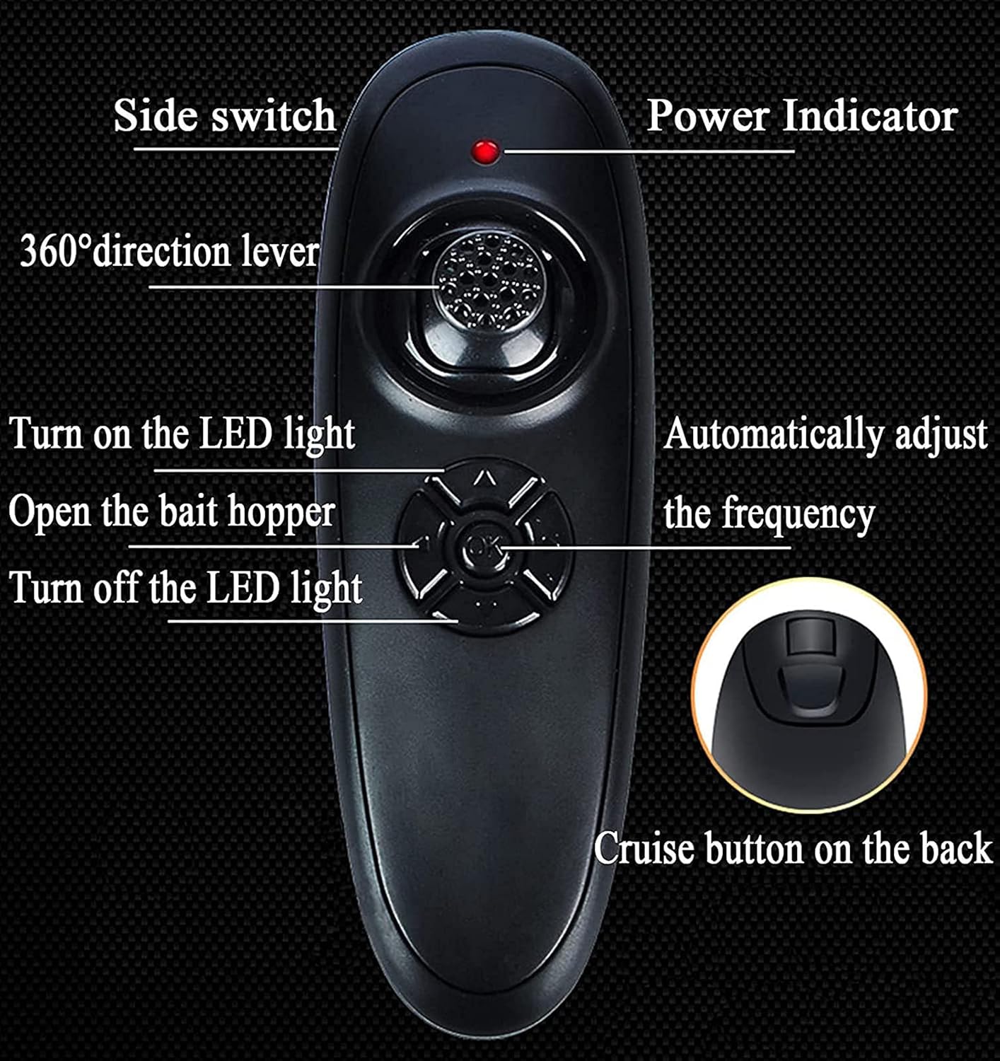 【Ricezione del segnale a 500 m】 In caso di interferenza del segnale, la distanza del telecomando è di 500 metri, puoi portare l'esca nel fitto banco di pesci, non preoccuparti del problema della scarsa distanza del telecomando. 【Funzionamento tramite telecomando】 Dispone di funzione di controllo della velocità di crociera, controllo della direzione, doppio motore ad alta velocità, velocità di crociera fissa, controllo indipendente di 1 contenitore per esche e può controllare le luci. 【Controllo indipendente dell'esca】 I contenitori per esche possono essere controllati in modo indipendente, possono contenere esche diverse, evitando il rilascio una tantum di esche diverse e realizzando un rilascio multiuso. 【Design della luce di navigazione notturna】 Comodo da usare di notte o nelle giornate nuvolose, il design della luce, il design della luce bicolore con controllo a lunga distanza, determinano chiaramente la posizione della nave e forniscono un buon ambiente di illuminazione. 【Design monoblocco】 Il corpo principale della fusoliera è realizzato in un guscio rigido in ABS, completamente chiuso, impermeabile e resistente all'umidità, con forte resistenza al vento, baricentro stabile e non teme vento e onde.