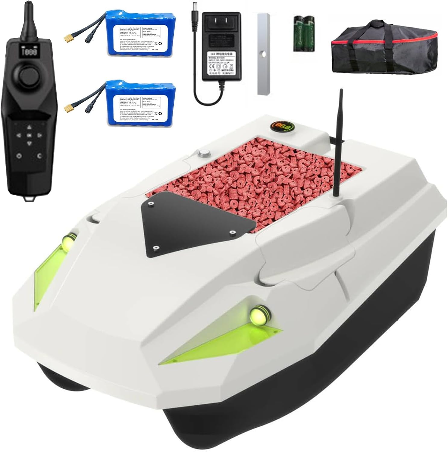 Cruise Control e ritorno automatico: basta un clic per attivare il sistema di cruise control per mantenere le barche da pesca a velocità costante in linea retta, risparmiando tempo e fatica e senza disturbare i pesci. L'elica a tre pale di ultima generazione offre una potenza elevata e una navigazione veloce. Inoltre, la batteria da 5200 mAh/12000 mAh offre un'autonomia in standby fino a 4-8 ore. Luce LED notturna e ampio spazio per l'esca: la visione notturna ampliata ti aiuterà a giudicare facilmente la direzione della navigazione e a garantire un'esca precisa durante la pesca. 3 serbatoi per esche individuali per trasportare più esche Crociera a punto fisso: sistema di posizionamento satellitare doppio Beidou/GPS, è possibile impostare 16 punti di posizionamento, partendo dal punto di partenza, per raggiungere la destinazione in modo automatico. Correzione automatica del percorso: sistema di bilanciamento automatico integrato nella barca esca, che può aiutare a correggere automaticamente l'imbardata e garantire che la barca continui a navigare dritta nonostante il vento/le onde e il carico.