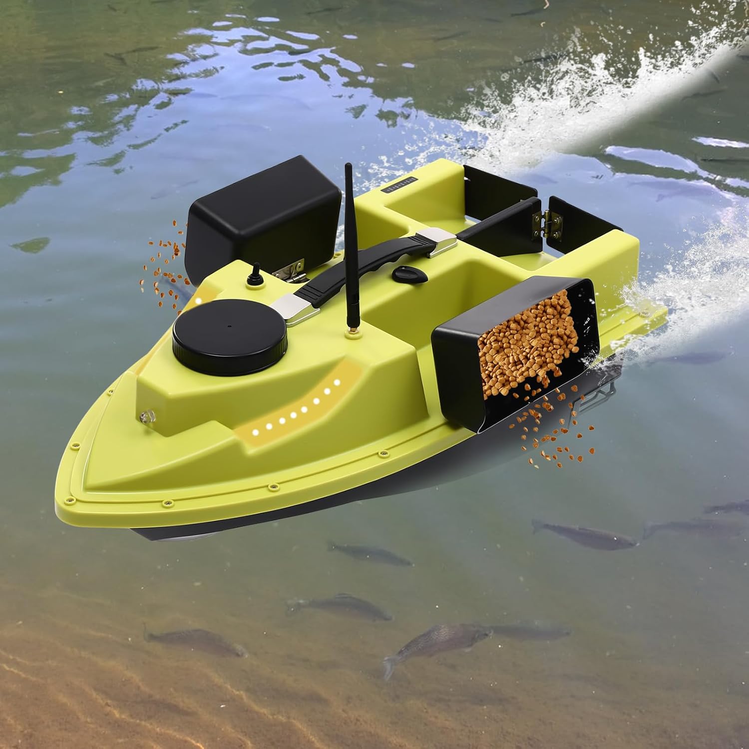 **Lunga portata**: con un telecomando fino a 500 m, puoi controllare comodamente la barca e lanciare esche da remoto **Batteria a lunga durata**: la batteria al litio da 5,2 Ah offre un tempo di funzionamento da 1 a 2 ore per sessioni di pesca più lunghe **Funzionalità impermeabile**: il grado di protezione IP65 garantisce un utilizzo sicuro anche in condizioni climatiche bagnate e ventose **Grande capacità di carico: con una portata di 2 kg è possibile trasportare più esche contemporaneamente e coprire più punti **Navigazione facile**: GPS e sistema di ritorno automatico garantiscono un controllo preciso e un orientamento affidabile sull'acqua