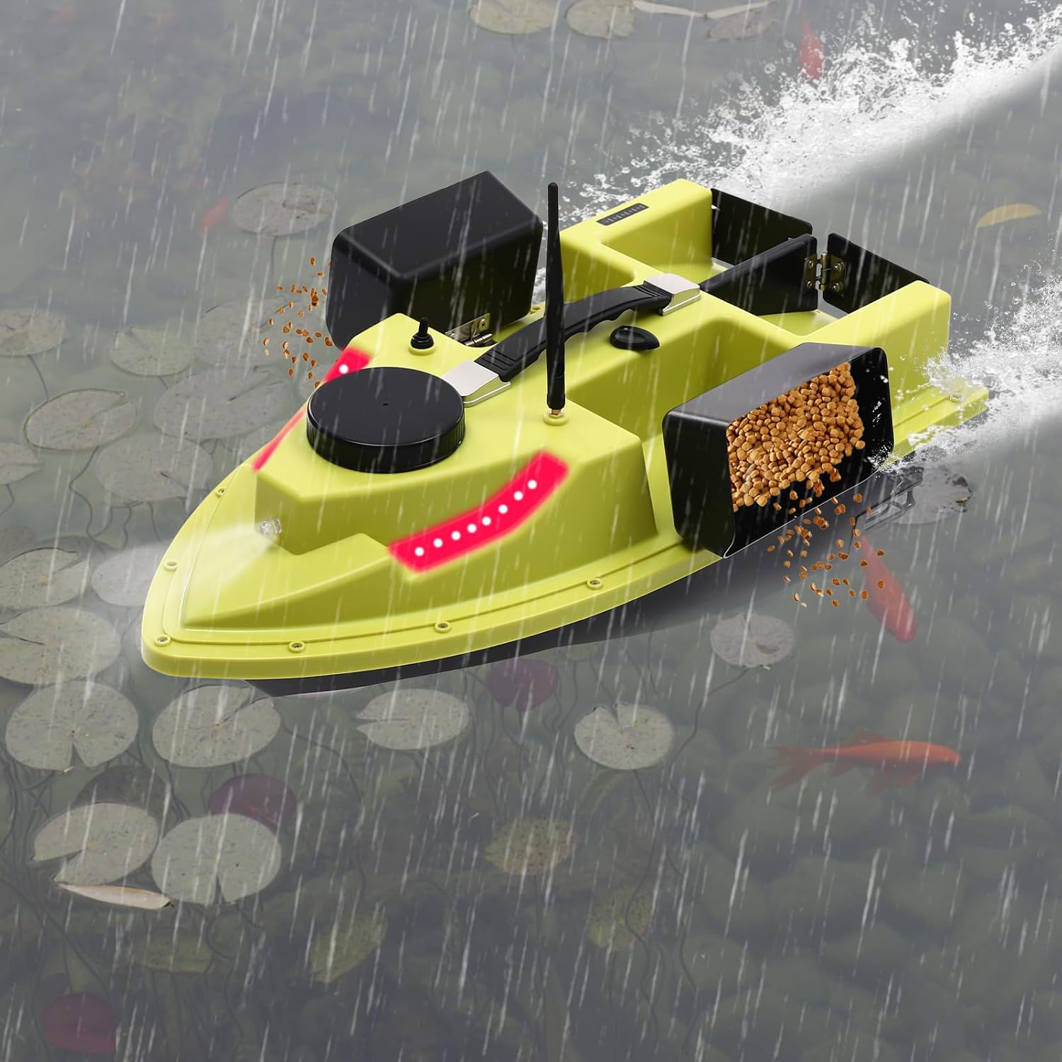 Design robusto e durevole: realizzato in ABS di alta qualità, impermeabile (IP65), antiurto e resistente alla deformazione, adatto per lunghi periodi di utilizzo. Posizionamento GPS preciso: con giroscopio a sei assi integrato e GPS, correzione automatica del corso e funzione di ritorno a batteria scarica, fino a 99 punti di pesca memorizzabili. Telecomando avanzato: telecomando da 2,4 G fino a 500 metri, consente un facile controllo della direzione, delle scatole di pesca e l'uso della funzione di crociera. Batteria a lunga durata: batteria al litio da 5,2 Ah con 1-2 ore di lavoro continuo, soddisfa i requisiti per lunghe gite di pesca. Potente azionamento: due motori a filo di rame puro con struttura a doppio cuscinetto forniscono una potenza sufficiente, basso rumore durante la guida, migliora l'efficienza di pesca senza spaventare i pesci.