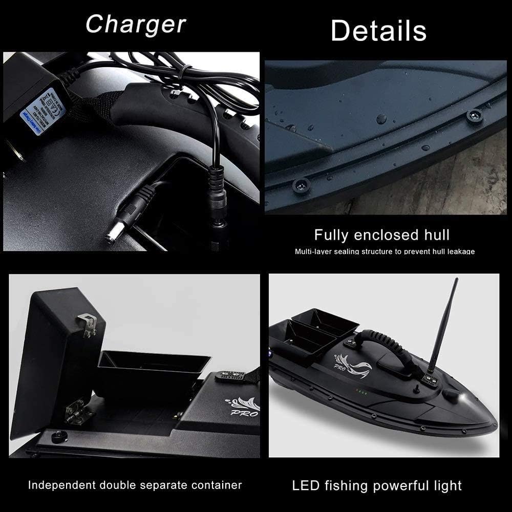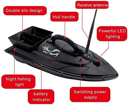 ◆◆Grazie al trasmettitore a 2,4 GHz, non avrai alcuna interferenza radio con questa barca elettrica. Il controllo remoto può essere effettuato entro un raggio di 500 metri e il segnale è ampiamente stabile. ◆◆Il corpo principale è realizzato in materiale ABS. Offre un'eccellente resistenza agli urti, all'usura, ai graffi e al vento forte e alle onde. Impermeabile, silenzioso, a basso consumo energetico e con una navigazione continua per almeno 2 secondi. ◆◆La batteria al litio si carica più velocemente e ha una maggiore capacità. La batteria è posizionata al centro dello scafo, garantendo un buon equilibrio e stabilità, e prestazioni migliori. ◆◆Lo scafo adotta un design a doppio motore, due magazzini indipendenti, che possono essere azionati indipendentemente, con una capacità di carico di circa 1,5 kg. Viene fornito con una borsa, un trasporto a mano portatile e un trasporto a spalla a doppio uso, facile da trasportare e da trasportare. ◆◆Dotato di un potente design a luce blu, può individuare e discernere la direzione del volo notturno e svolgere un ruolo importante nell'attrarre i pesci.