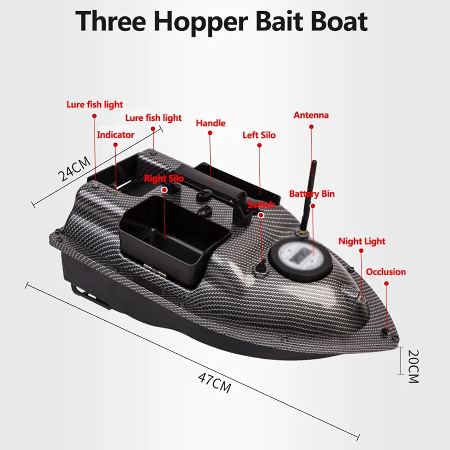 BARCA ESCA TELECOMANDATA MULTIFUNZIONALE: Rispetto ai metodi di pesca tradizionali, la barca esca telecomandata è più precisa e veloce. Può portare esche e ami sul fondo del lago per pescare o posizionare l'esca. AVVIAMENTO CON UN SOLO PULSANTE: Il cruise control si attiva con un solo pulsante, lasciando le mani libere. Il cruise control consente all'imbarcazione di navigare in linea retta a velocità costante. Il giroscopio corregge automaticamente la stabilità dello scafo e la velocità di rotazione per mantenere la navigazione in linea retta nonostante il vento e le onde. DESIGN CON 3 CONTENITORI PER ESCHE: I tre contenitori per esche del peschereccio possono essere controllati in modo indipendente per evitare di posizionare esche diverse contemporaneamente e ottenere un posizionamento multi-punto. Sono inoltre dotati di fessure per ganci per il posizionamento a punto fisso. POTENZA STRAORDINARIA: Motore a doppia alimentazione, potente ed efficiente, con elica a tre pale, per vivere il piacere della pesca. L'uso silenzioso non disturberà i pesci e la navigazione veloce garantirà una pesca più intensa.