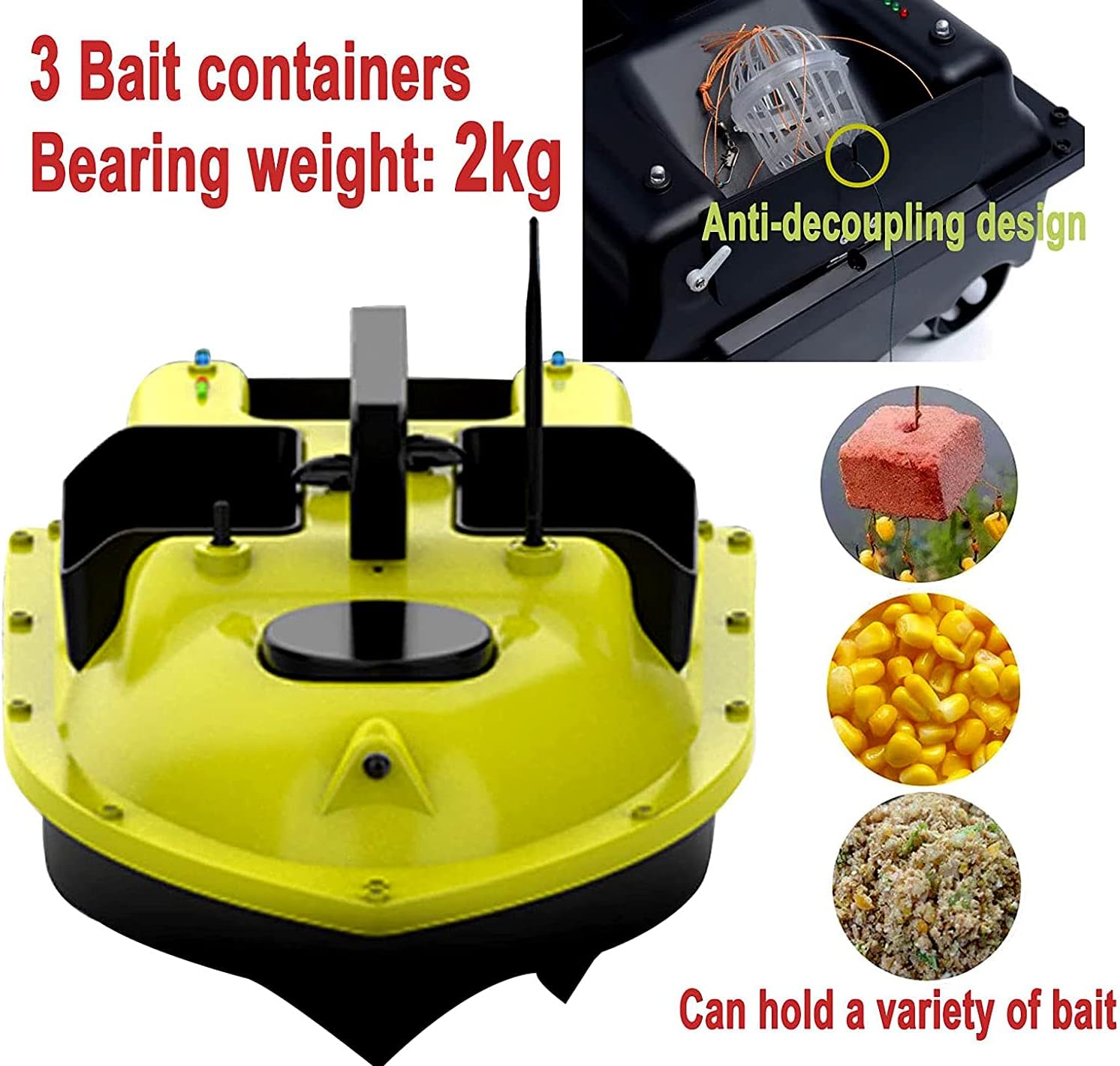 Nuovissimo design intelligente della barca con esche da pesca, con maniglia del telecomando a 1 mano, telecomando da 400-500 m, nessuna interferenza per migliorare il segnale. Dotato di un giroscopio intelligente, verrà calibrato automaticamente quando si cambia direzione e la direzione può essere calibrata automaticamente quando viene imbardata in caso di vento forte e onde, risparmiando tempo e fatica 3 contenitori per esche possono essere controllati in modo indipendente, il che può evitare il rilascio singolo di esche diverse e realizzare un posizionamento multi-punto Vengono utilizzati doppi motori ad alta velocità ed eliche a tre pale, che sono più potenti e il carico massimo è di circa 2 kg La nostra barca RC per la pesca è realizzata in materiale ABS. Lo scafo è grande, il centro è stabile e non è facile capovolgersi. L'intera struttura è completamente sigillata e ha ottime prestazioni. La prua è inoltre dotata di luci a LED, utilizzabili anche di notte Servizio: Se avete domande su questo prodotto, non esitate a contattarci, vi risponderemo entro 24 ore!