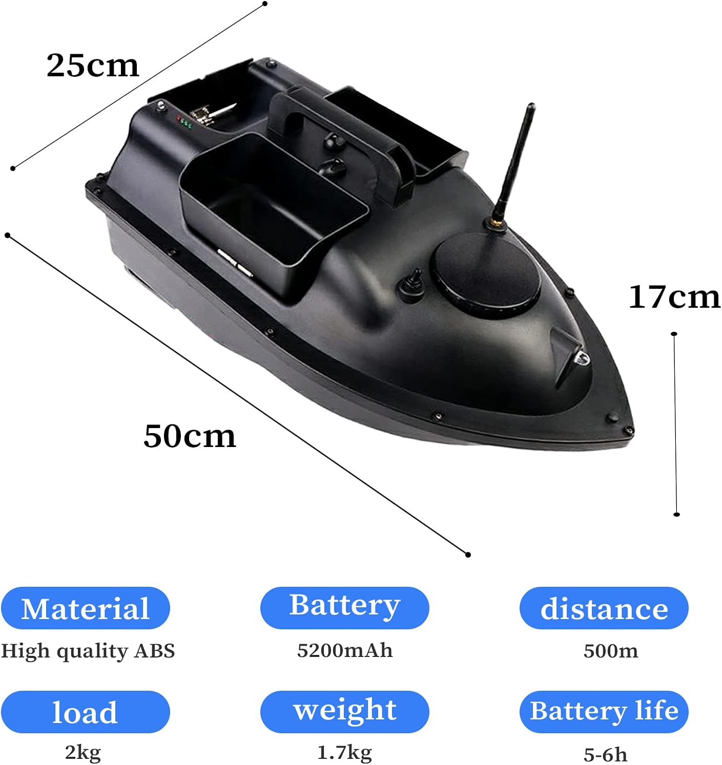 differenza di altre barche per esche da pesca, la nostra barca per esche da pesca intelligente ha tre contenitori per esche da pesca controllati in modo indipendente, che possono essere azionati in modo indipendente e trasportare più tipi di esche contemporaneamente, con un carico di circa 2 kg Versione GPS aggiornata del telecomando a due mani, telecomando da 400-500 m, nessuna interferenza e segnale migliorato, fondo del telecomando con schermo LCD, distanza, direzione, posizionamento, potenza e luci saranno chiaramente visualizzati sullo schermo Per farti sentire più a tuo agio durante l'utilizzo Il corpo principale delle barche esche da pesca è realizzato in ABS di alta qualità, con uno scafo completamente chiuso. Lo scafo è ampio, il centro è stabile e non si capovolge facilmente. Può essere utilizzato in vari tipi di acque, come laghi o mari. La nostra barca radiocomandata è dotata di una funzione di controllo intelligente della velocità di crociera, che verifica automaticamente i cambi di direzione. Quando la batteria è troppo scarica o il segnale è disconnesso, il mezzo riprenderà la stessa rotta, evitando fermate dovute a mancanza di corrente. Inoltre, dispone di funzioni come l'accesso diretto e il ritorno a 1 tasto, comodi da usare e che non vi faranno preoccupare di perdervi.