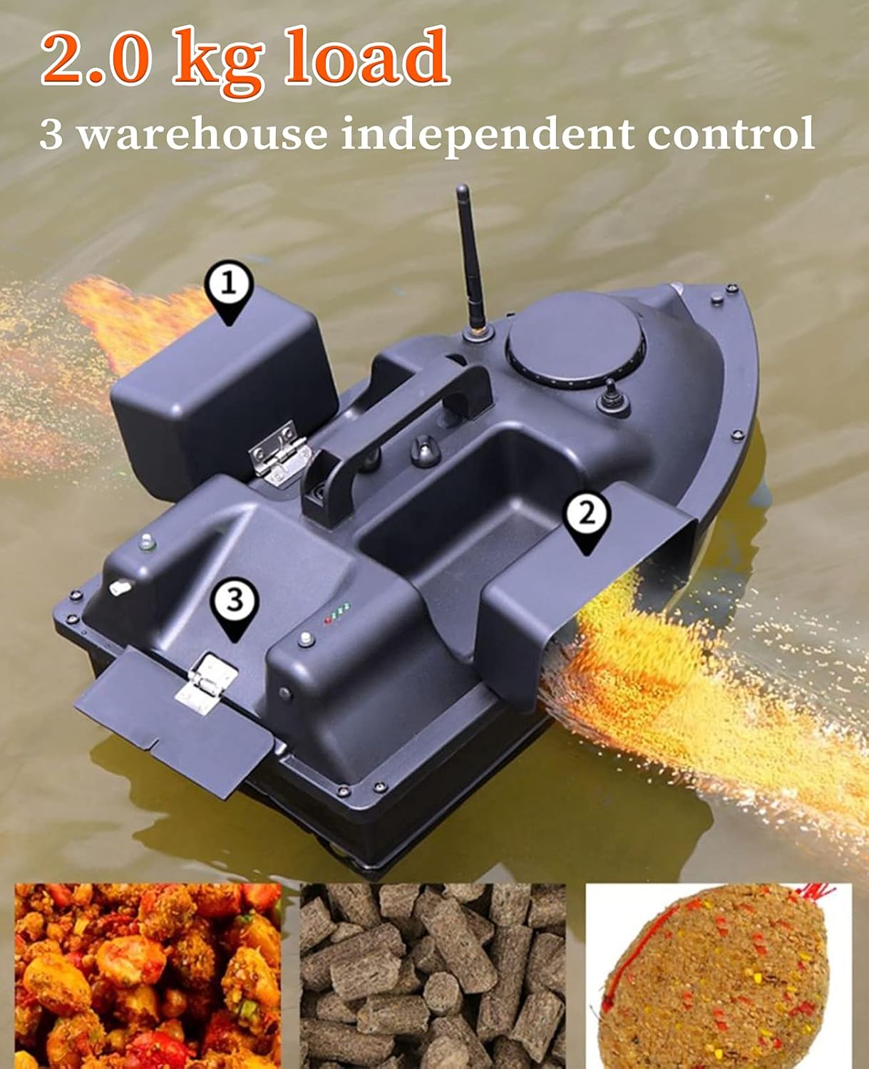differenza di altre barche per esche da pesca, la nostra barca per esche da pesca intelligente ha tre contenitori per esche da pesca controllati in modo indipendente, che possono essere azionati in modo indipendente e trasportare più tipi di esche contemporaneamente, con un carico di circa 2 kg Versione GPS aggiornata del telecomando a due mani, telecomando da 400-500 m, nessuna interferenza e segnale migliorato, fondo del telecomando con schermo LCD, distanza, direzione, posizionamento, potenza e luci saranno chiaramente visualizzati sullo schermo Per farti sentire più a tuo agio durante l'utilizzo Il corpo principale delle barche esche da pesca è realizzato in ABS di alta qualità, con uno scafo completamente chiuso. Lo scafo è ampio, il centro è stabile e non si capovolge facilmente. Può essere utilizzato in vari tipi di acque, come laghi o mari. La nostra barca radiocomandata è dotata di una funzione di controllo intelligente della velocità di crociera, che verifica automaticamente i cambi di direzione. Quando la batteria è troppo scarica o il segnale è disconnesso, il mezzo riprenderà la stessa rotta, evitando fermate dovute a mancanza di corrente. Inoltre, dispone di funzioni come l'accesso diretto e il ritorno a 1 tasto, comodi da usare e che non vi faranno preoccupare di perdervi. Servizio: Se hai domande su questo prodotto, non esitare a contattarci, ti risponderemo entro 24 ore!