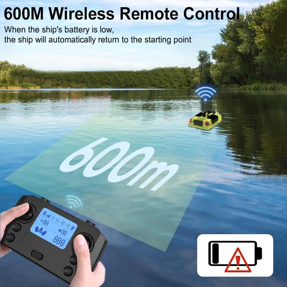 【Potenza potente】: la barca da pesca telecomandata adotta un potente design a doppio motore per fornire potenza sufficiente alla barca ed è dotata di un'elica a tre pale per aumentare la spinta e l'area delle pale nell'acqua, rendendo la potenza forte e la barca telecomandata viaggia veloce. Batteria al litio da 12000 mAh, ricarica più rapida e più durevole. 【Buone prestazioni】: la barca esca adotta una frequenza di controllo di 2,4 G e la distanza del telecomando può raggiungere i 1640,42 piedi. La barca da pesca è dotata del sisteme di calibrazione automatica Beidou e del sistemad di posizionamento GPS; è possibile impostare 40 punti di posizionamento per garantire un posizionamento accurato e migliorare l'efficienza della pesca. 【Elevata sicurezza】: il livello di potenza della barca da pesca con rilascio dell'esca viene visualizzato sullo schermo del telecomando. Se la batteria dell'imbarcazione per un lungo periodo, le luci dell'imbarcazione lampeggeranno, e l'imbarcazione tornerà automaticamente in posizione. Allo stesso tempo, lo scafo lineare riduce la resistenza all'acqua e la resistenza alla formazione di onde raggiunge il livello 7-8, garantendo la sicurezza durante il funzionamento e l'uso. 【Correzione automatica del prezzo】: la piccola barca da pesca è dotata di un sistemas di bilanciamento automatico integrato, in grado di correggere in modo intelligente il percorso di guida per garantire che l'esca mantenga una velocità uniforme e una linea retta in presenza di ventos, onde e carico. 【Design intelligente】: la barca RC ha tre scomparti per esche controllabili indipendentemente con una capacità di carico di circa 4,41 libbre, che consentono di controllare l'applicazione del nido a piacimento. Il contenitore posteriore dell'esca è inoltre dotato di un design anti-manomissione che consente di estrarre l'amo dalla lenza ed evitare che questa si aggrovigli.