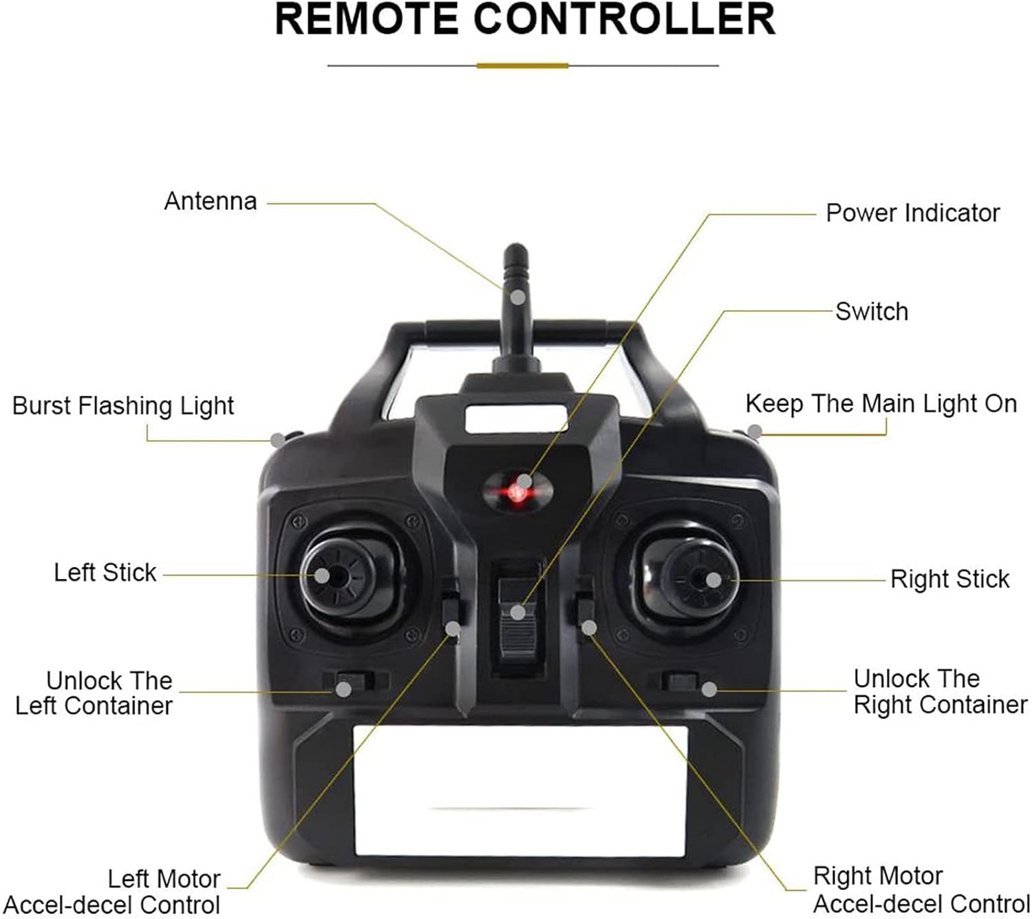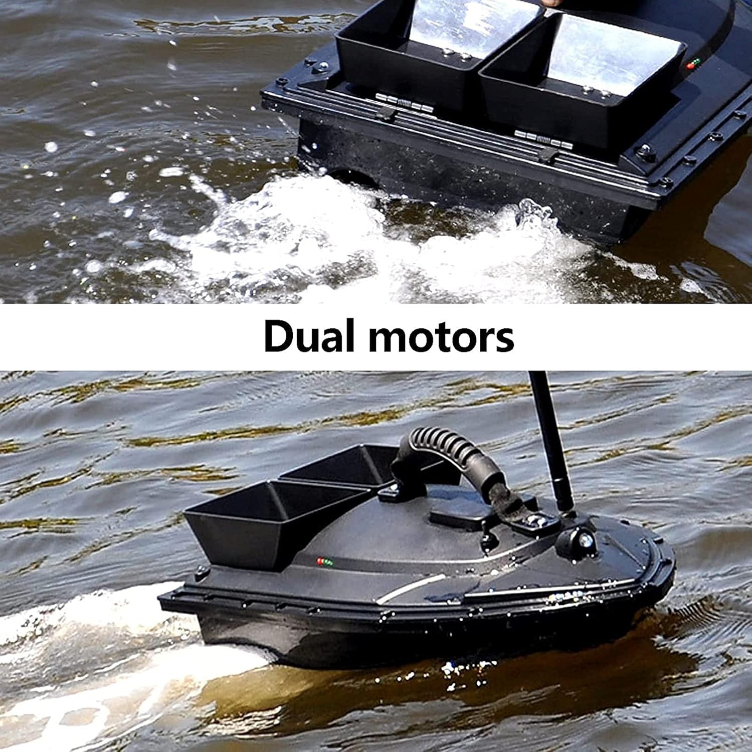 【Ricezione del segnale a 500 m】 In caso di interferenza del segnale, la distanza del telecomando è di 500 metri, puoi portare l'esca nel fitto banco di pesci, non preoccuparti del problema della scarsa distanza del telecomando. 【Funzionamento tramite telecomando】 Dispone di funzione di controllo della velocità di crociera, controllo della direzione, motore ad alta velocità, velocità di crociera fissa, controllo indipendente di 2 contenitori per esche e può controllare le luci. 【Controllo indipendente dell'esca】 I contenitori per esche possono essere controllati in modo indipendente, possono contenere esche diverse, evitando il rilascio una tantum di esche diverse e realizzando un rilascio multiuso. 【Design della luce di navigazione notturna】 Comodo da usare di notte o nelle giornate nuvolose, il design della luce, il design della luce bicolore con controllo a lunga distanza, determinano chiaramente la posizione della nave e forniscono un buon ambiente di illuminazione. 【Design monoblocco】 Il corpo principale della fusoliera è realizzato in un guscio rigido in ABS, completamente chiuso, impermeabile e resistente all'umidità, con forte resistenza al vento, baricentro stabile e non teme vento e onde.