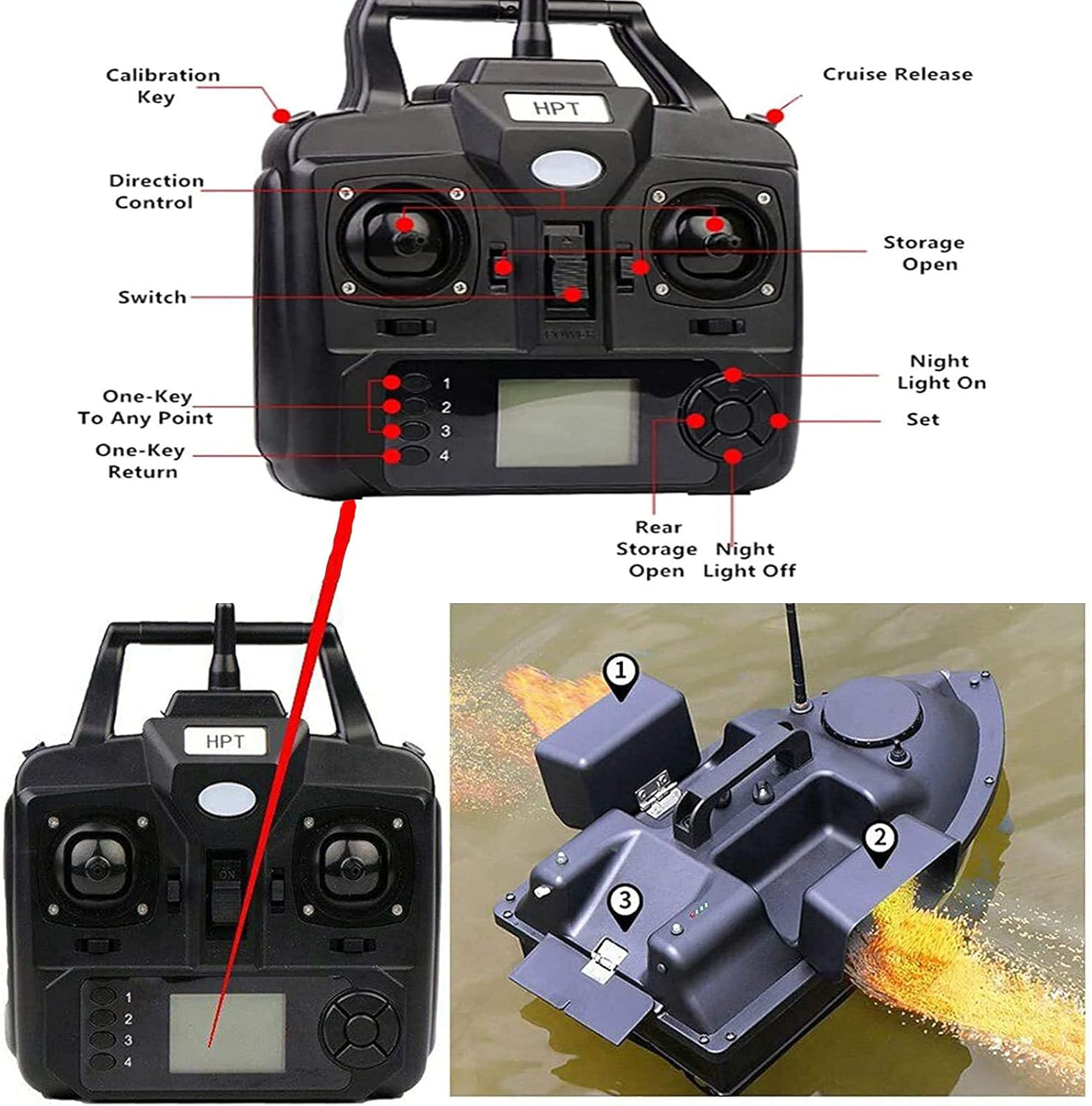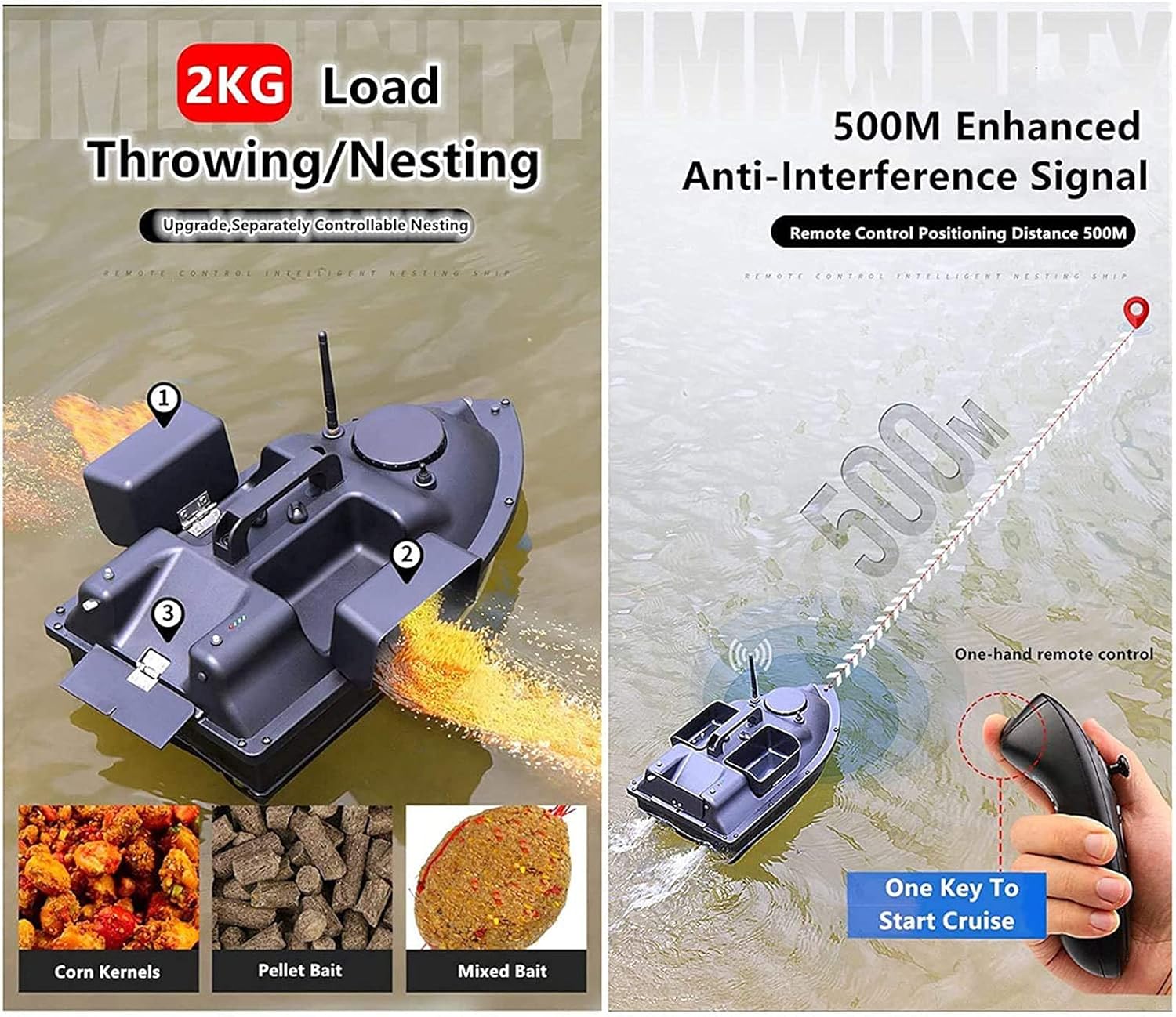 【Ricezione del segnale a 500 m】 In caso di interferenza del segnale, la distanza del telecomando è di 500 metri, puoi portare l'esca nel fitto banco di pesci, non preoccuparti del problema della scarsa distanza del telecomando. 【Funzionamento tramite telecomando】 Grazie alla funzione cruise control, è possibile impostare 3 punti di posizionamento. È possibile alternare i 3 punti secondo necessità. Dopo aver impostato l'origine, se il segnale viene disconnesso e la batteria è scarica, la nave tornerà automaticamente all'origine dopo 15 secondi. 【Controllo indipendente dell'esca】 3 contenitori per esche possono essere controllati indipendentemente e possono contenere esche diverse, evitando il rilascio una tantum di esche diverse e realizzando un rilascio multiuso. 【Design della luce di navigazione notturna】 Comodo da usare di notte o nelle giornate nuvolose, il design dell'illuminazione, il controllo a lunga distanza della luce anteriore e posteriore a due colori, determinano chiaramente la posizione della nave e forniscono un buon ambiente di illuminazione. 【Design monoblocco】 Il corpo principale della fusoliera è realizzato in guscio rigido in ABS, completamente chiuso, impermeabile e resistente all'umidità, forte resistenza al vento, baricentro stabile, non teme vento e onde.