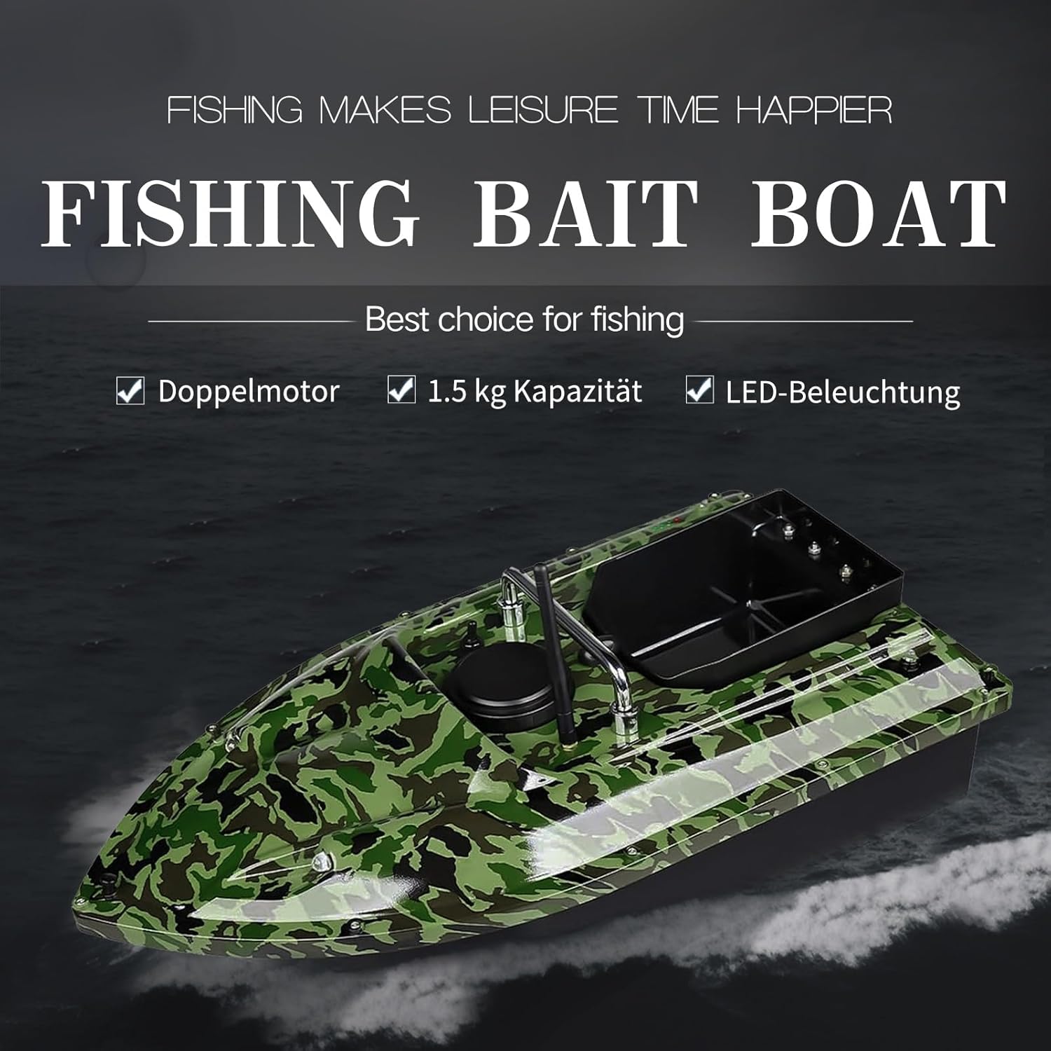 Batteria ad alta capacità: dotata di tre batterie da 12000 mAh, ciascuna fornisce 4-6 ore di funzionamento continuo per sessioni di pesca prolungate senza ricariche frequenti. Facile posizionamento dell'esca: dotato di ganci per il trasporto per un comodo posizionamento di esche e ganci, oltre a un telecomando fino a 500 m, comprese le funzioni di ritorno intelligente one-touch e crociera automatica. Capacità di pesca notturna: gli indicatori LED integrati consentono una facile navigazione e un lancio preciso dell'esca in condizioni di scarsa illuminazione, migliorando le esperienze di pesca notturna. Portata estesa: la barca telecomandata ha un raggio di ricezione del segnale di 300-500 m, garantendo un'ampia copertura per le attività di pesca, sebbene le prestazioni possano variare a seconda degli ostacoli o delle interferenze. Resistente e impermeabile: progettato con doppio motore resistente all'erba e copertura protettiva, garantisce prestazioni affidabili in varie condizioni dell'acqua e resistenza all'ingresso di acqua.