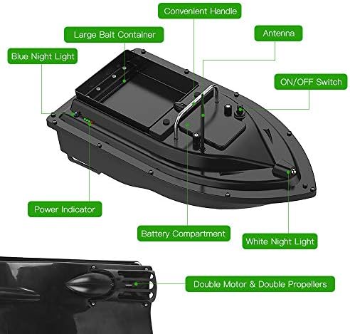 Durata prolungata della batteria: dotato di tre batterie ad alta capacità da 12000 mAh, ciascuna fornisce 4-6 ore di funzionamento continuo per sessioni di pesca prolungate senza ricariche frequenti. Posizionamento efficiente delle esche: dotato di ganci per il trasporto per un posizionamento facile e preciso delle esche, integrato dal funzionamento remoto con una portata fino a 500 m, incluso il ritorno intelligente one-touch e la crociera automatica per una maggiore comodità. Pesca notturna migliorata: gli indicatori LED integrati illuminano il percorso dell'imbarcazione durante le operazioni notturne, garantendo una navigazione precisa e il lancio dell'esca in condizioni di scarsa illuminazione. Potenza del segnale affidabile: fornisce una robusta portata del telecomando di 300-500 m, con regolazioni delle prestazioni per ostacoli o interferenze per mantenere un funzionamento ottimale. Design durevole e impermeabile: presenta un design impermeabile a doppio motore con una copertura protettiva, che garantisce durata e funzionalità in varie condizioni dell'acqua per un'esperienza di pesca affidabile.