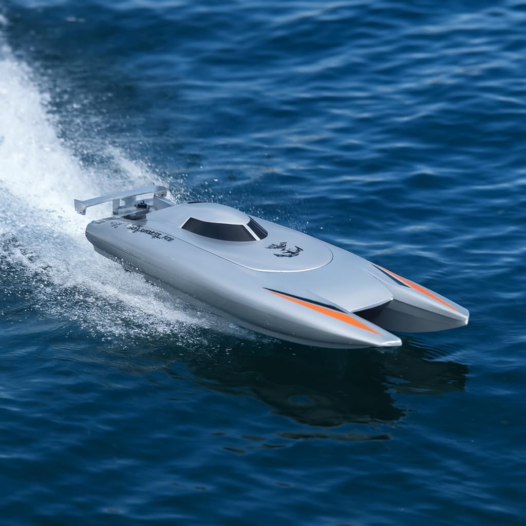 Prestazioni ad alta velocità: raggiunge velocità emozionanti fino a 25 km/h con una potente propulsione a doppio motore, offrendo un'esperienza di corsa adrenalinica su laghi, fiumi o piscine. Telecomando a 2,4 GHz: goditi un controllo stabile a lungo raggio con tecnologia anti-interferenza, che consente a più barche di correre insieme senza interruzioni del segnale. Scafo impermeabile e durevole: realizzato con un design sigillato e impermeabile per evitare perdite, garantendo un funzionamento sicuro e una maggiore durata anche in condizioni d'acqua difficili. Batteria a lunga durata: dotata di una batteria ricaricabile ad alta capacità per una lunga durata, perfetta per un divertimento ininterrotto durante le sessioni all'aperto. Ideale per adulti e appassionati: l'elegante finitura argento e il design aerodinamico rendono questa barca RC una scelta eccezionale per hobbisti, collezionisti e appassionati di corse in cerca di prestazioni e stile.