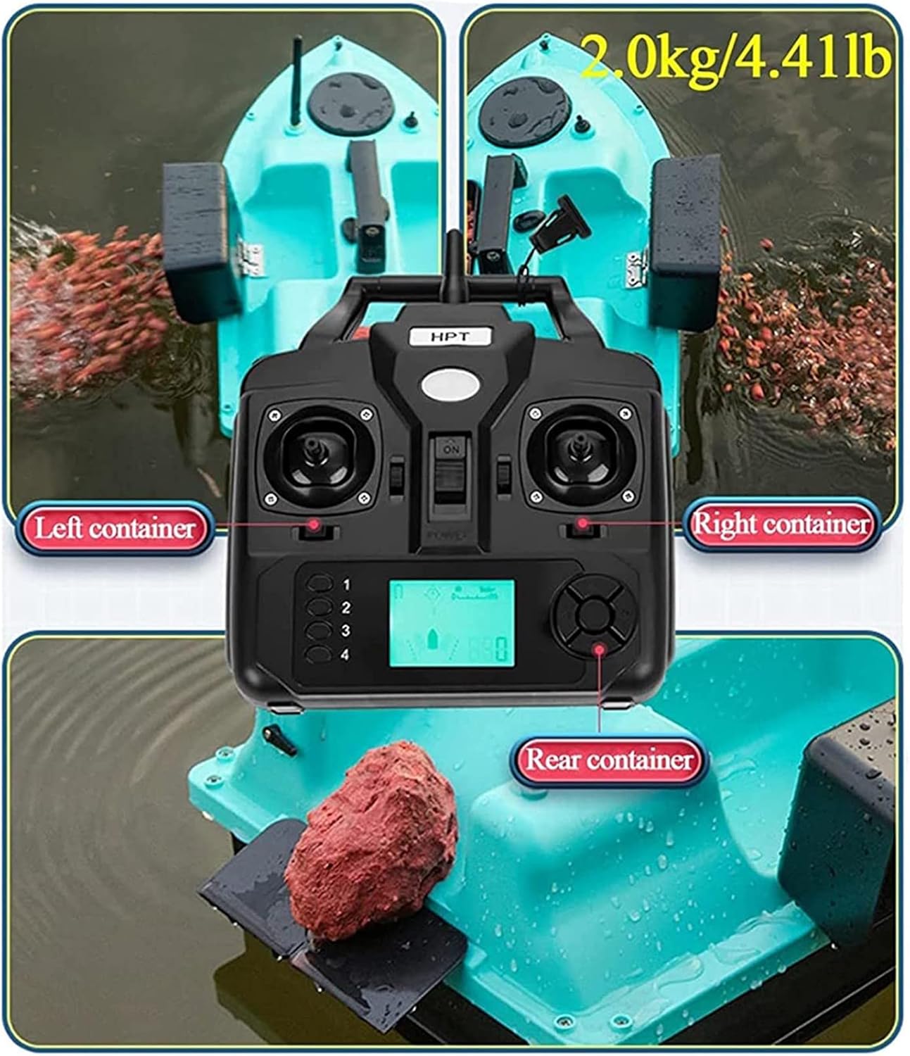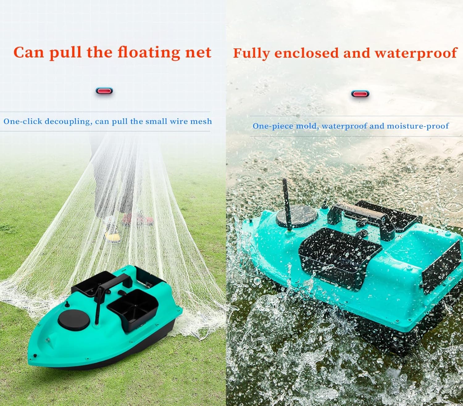 La nostra barca esca Rc è dotata di telecomando GPS, controllo senza barriere entro 500 m, può impostare 1 origine e 15 punti fissi, la nave può muoversi arbitrariamente tra 15 punti fissi e può lanciare esche e trasportare ami da lontano per rendere la pesca più facile, questo è il miglior regalo per gli appassionati di pesca. La barca da pesca intelligente è dotata di due potenti motori e due eliche, più veloci e potenti. Allo stesso tempo, è dotata di un cruise control intelligente, che può essere corretto automaticamente in caso di deviazione della direzione. In caso di potenza insufficiente o perdita del segnale, la barca tornerà sulla rotta originale, evitando arresti dovuti a mancanza di potenza durante il percorso. La nostra barca da pesca per carpe è dotata di due motori ed eliche a 3 pale, più potenti e a basso consumo energetico. Lo scafo è dotato di 3 contenitori per esche di grande capacità, che possono essere lanciati in più fasi e possono contenere fino a 2 kg. Non solo le esche, ma anche gli ami possono essere trasportati più a lungo, aumentando le possibilità di catturare pesci di grossa taglia. 1- La scocca è realizzata in materiale ABS, stabile e anticollisione. 2- Grazie alle luci di navigazione notturne a LED, può essere utilizzata anche di notte. 3- Rete galleggiante estraibile, telecomando con disaccoppiamento a 1 tasto. 4- L'elica è dotata di anticollisione. Avvolgere la scocca per evitare che le piante acquatiche si intromettano.