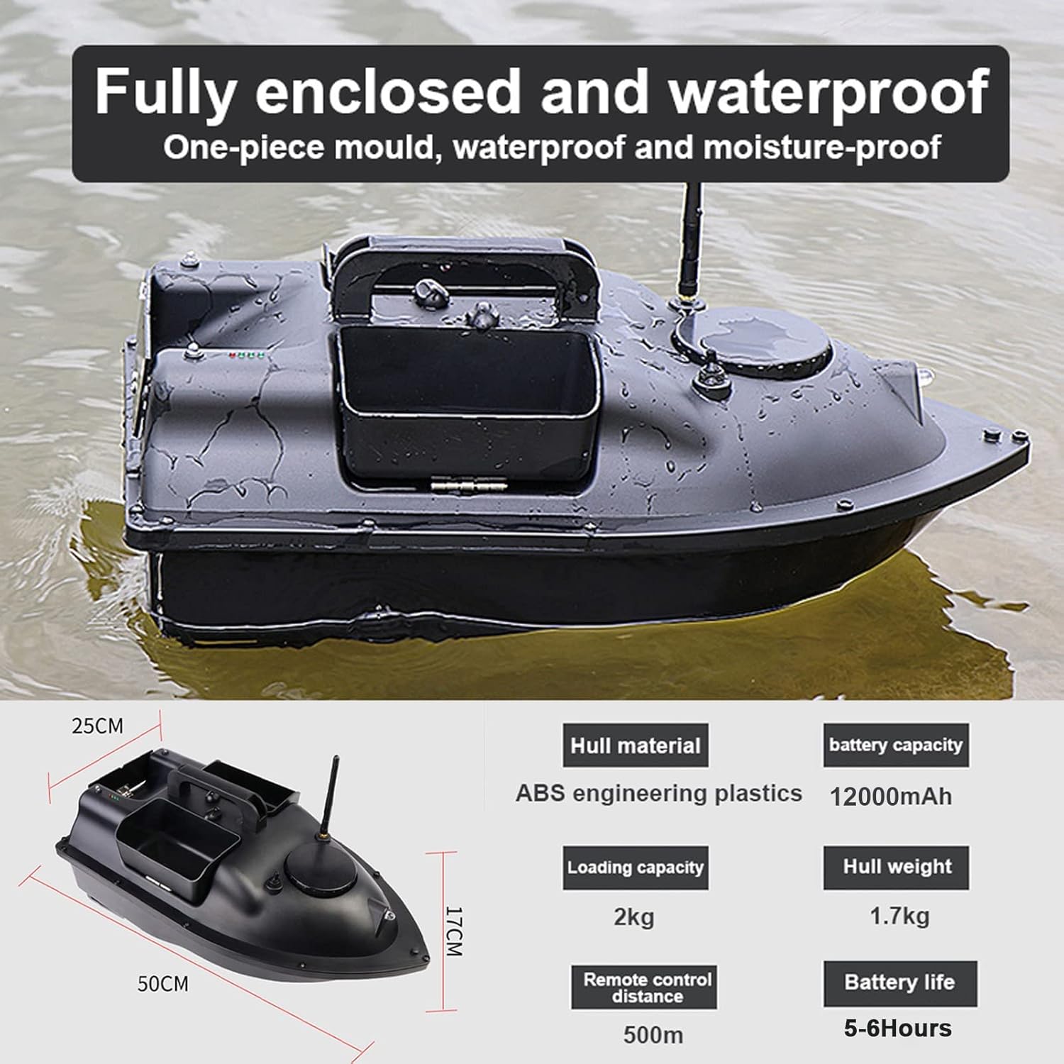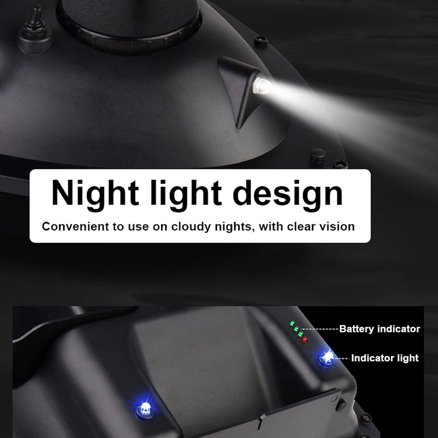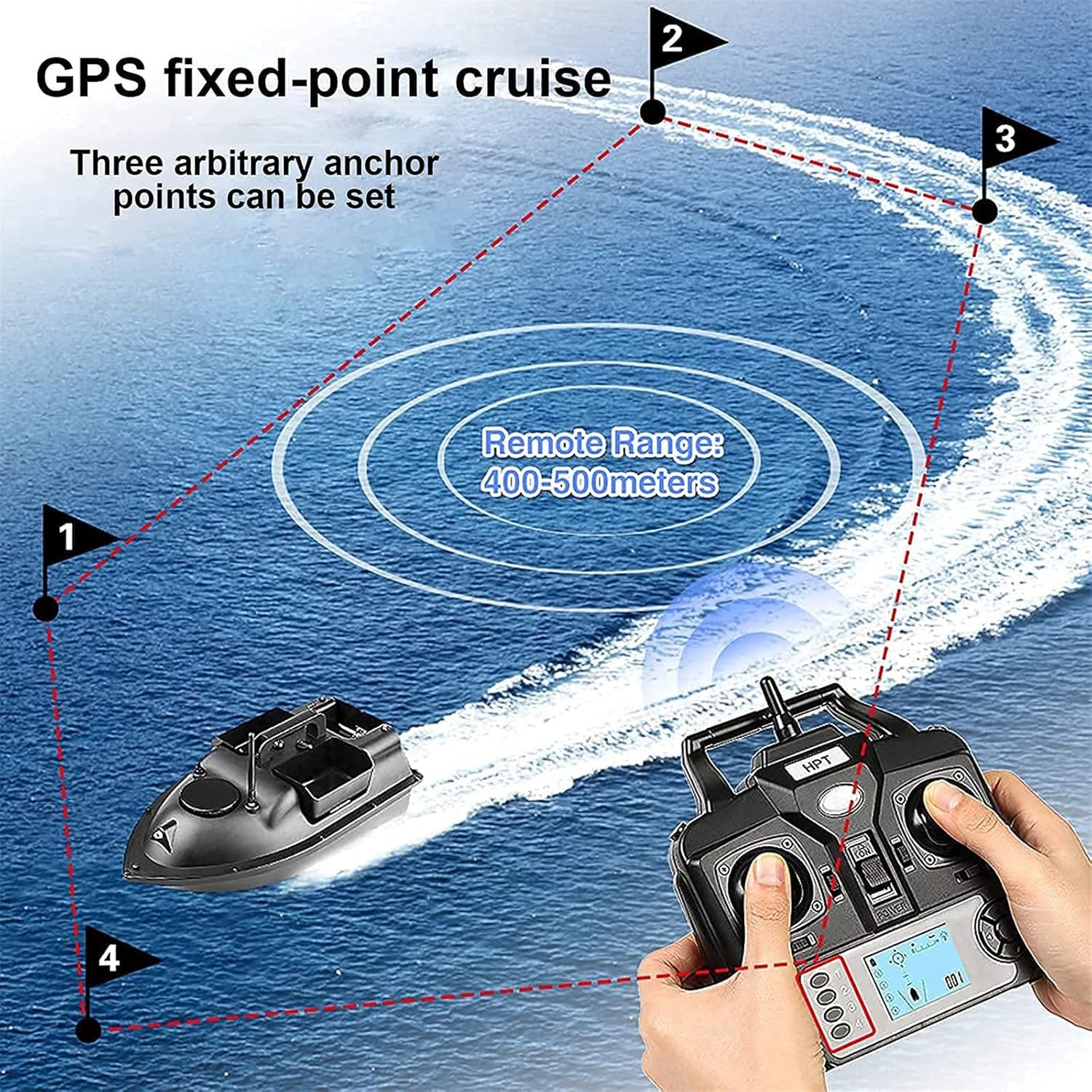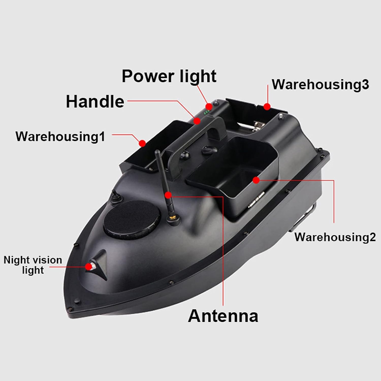 【Barca esca intelligente】: la barca esca telecomandata intelligente integra la tecnologia intelligente nelle attività di pesca sulla base della pesca tradizionale. Questo nuovo metodo di pesca può portare esche e ami nel fondo del lago per pescare o posizionare esche. 【Tramoggia per esche di grande capacità】: la barca per esche ha 3 tramogge per esche, che possono caricare 2 kg di esche. Il telecomando può controllare autonomamente l'apertura del contenitore dell'esca per favorire la raccolta del pesce. Inoltre, puoi appendere il gancio nel contenitore dell'esca. Puoi pescare più facilmente quando la barca versa l'esca nell'acqua 【Telecomando LCD GPS】: la barca esca ha la funzione di crociera GPS. Il telecomando LCD può impostare 1 posizione iniziale e 3 punti fissi e la barca esca può spostarsi tra 3 punti fissi. 【Funzionamento notturno con riflettori a LED】: design dell'illuminazione, comodo per l'annidamento notturno. Le luci bicolore anteriori e posteriori confermano chiaramente la posizione della nave in lontananza. 【Batteria al litio ad alte prestazioni】: la barca esca è alimentata da una batteria da 5200 mAh. Può essere addebitato separatamente ed è facile da installare. Dopo ogni carica completa, la barca esca può essere utilizzata per circa 2-3 ore, il che è molto adatto per la pesca alla carpa.