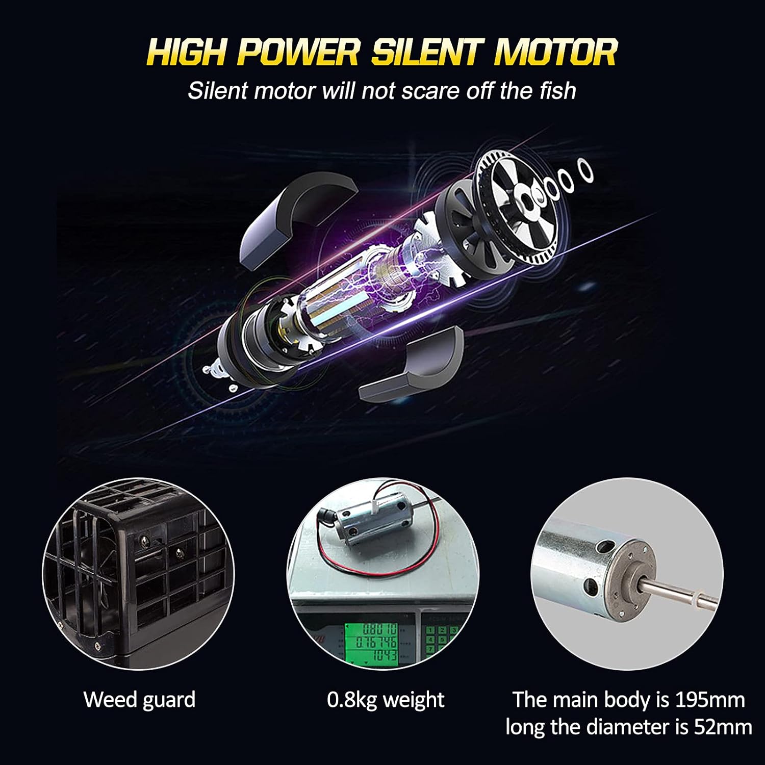 La costruzione robusta e allargata resiste agli elementi duri del vento e delle onde. Carico massimo circa 8 kg. Segnale potente con un ampio raggio di controllo di circa 600 metri. Telecomando touchscreen per un facile utilizzo. Memorizza 8 punti di posizione e lancia verso il bersaglio con un solo pulsante. Il motore silenzioso ad alta potenza da 36 W non spaventerà i pesci.