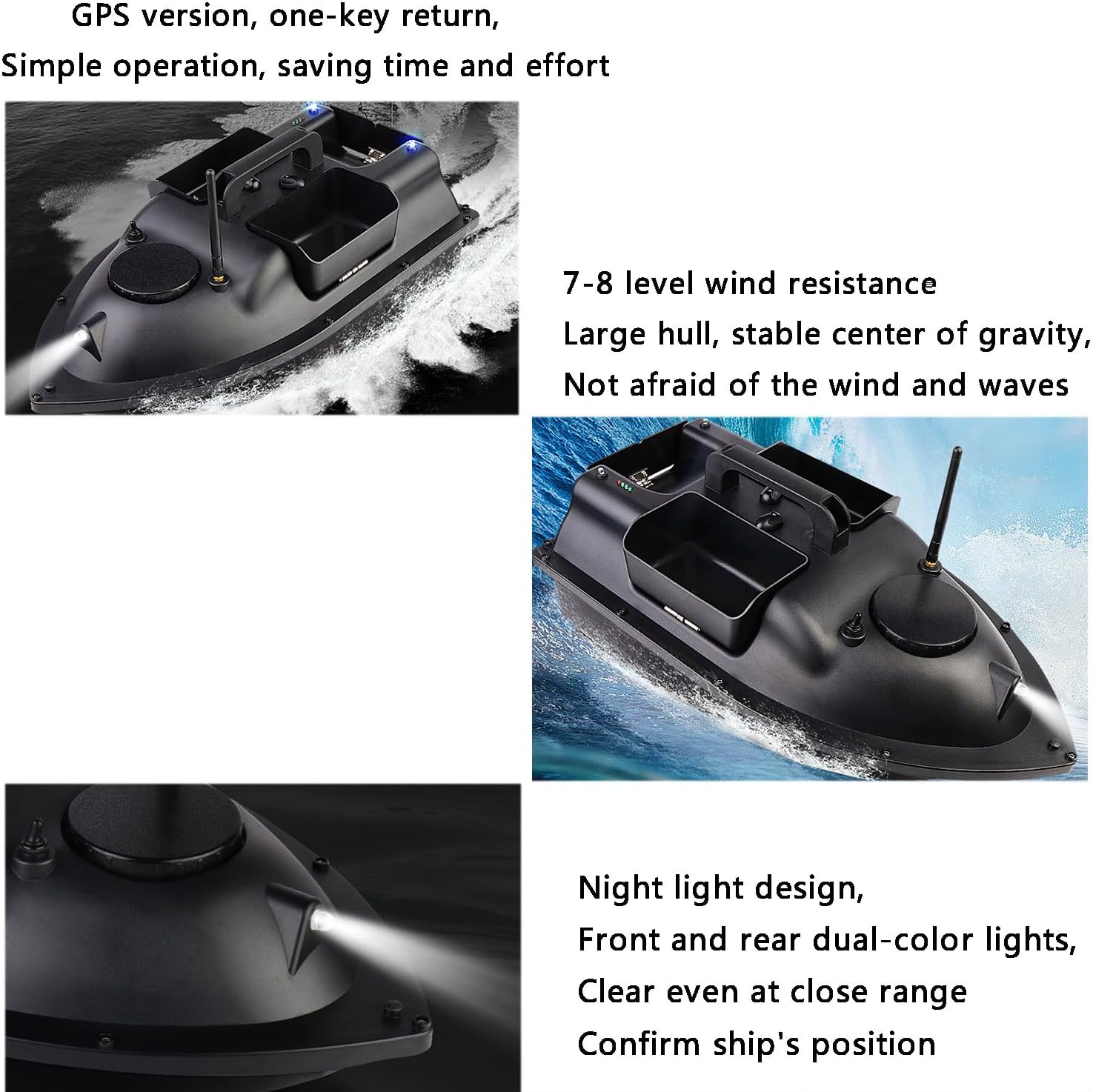 Struttura della barca: l'ingresso può essere controllato in modo indipendente per ottenere un lancio dell'esca più preciso. Realizzato in materiale industriale ABS, più stabile, indossabile e galleggiante; tre tramogge possono caricare più di 4 kg di esche. I potenti doppi motori sono dotati di eliche a 3 pale. Valutare la direzione di navigazione accurata con luce notturna. Introduzione alla funzione GPS】1. Velocità di crociera fissa, 2. Ritorno con 1 tasto, 3. Accesso diretto con 1 tasto a qualsiasi punto di posizionamento, 4. Correzione intelligente, 5. Controllo separato di tre magazzini, 6. Illuminazione controllabile, 7. Antivento e onde Livello 7-8, 8. Ritorno automatico al viaggio in caso di interruzione di corrente, 9. Lo schermo LCD visualizza la distanza dall'alimentazione della nave Prestazioni della barca: grazie alla sua ampia carrozzeria e alla sua stabilità, può resistere a venti di livello 7-8 ed è utilizzabile dai laghi agli oceani; con una batteria da 5200 mAh, ha una lunga durata in standby fino a 2-3 ore; correzione intelligente, che consente di mantenere la linea retta e la velocità costante. Display LCD: visualizzazione della potenza, della distanza, della posizione, della luce notturna e della direzione. Lo schermo LCD del telecomando visualizza la potenza, la bussola e gli indicatori di navigazione dell'imbarcazione. Leggero e adatto alla maggior parte dei metodi di pesca. Servizio: Se hai domande su questo prodotto, non esitare a contattarci, ti risponderemo entro 24 ore!