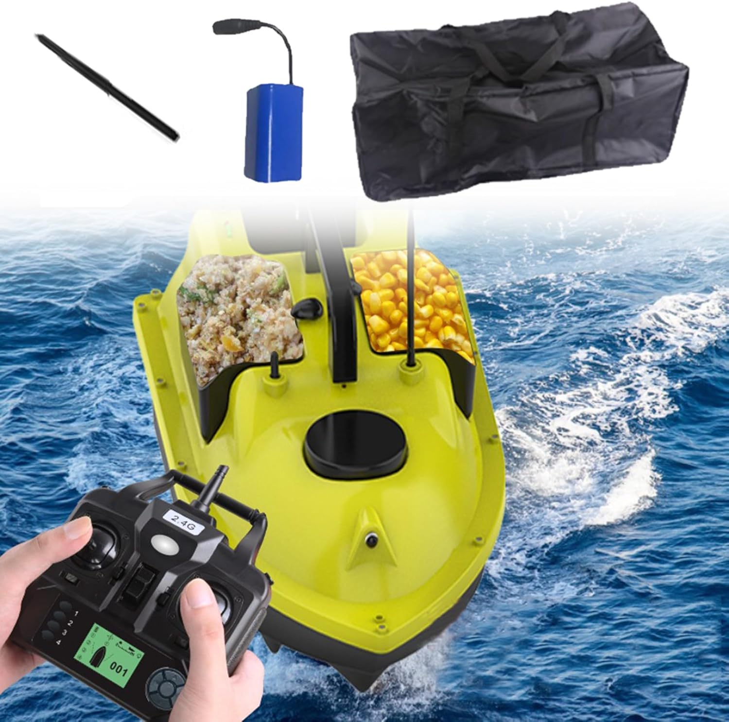 【Ricezione del segnale a 500 m】 In caso di interferenza del segnale, la distanza del telecomando è di 500 metri, puoi portare l'esca nel fitto banco di pesci, non preoccuparti del problema della scarsa distanza del telecomando. 【Funzionamento tramite telecomando】 Dispone di funzione di controllo della velocità di crociera, controllo della direzione, motore ad alta velocità, velocità di crociera fissa, controllo indipendente di 2 contenitori per esche e può controllare le luci. 【Controllo indipendente dell'esca】 I contenitori per esche possono essere controllati in modo indipendente, possono contenere esche diverse, evitando il rilascio una tantum di esche diverse e realizzando un rilascio multiuso. 【Design della luce di navigazione notturna】 Comodo da usare di notte o nelle giornate nuvolose, il design della luce, il design della luce bicolore con controllo a lunga distanza, determinano chiaramente la posizione della nave e forniscono un buon ambiente di illuminazione. 【Design monoblocco】 Il corpo principale della fusoliera è realizzato in un guscio rigido in ABS, completamente chiuso, impermeabile e resistente all'umidità, con forte resistenza al vento, baricentro stabile e non teme vento e onde.