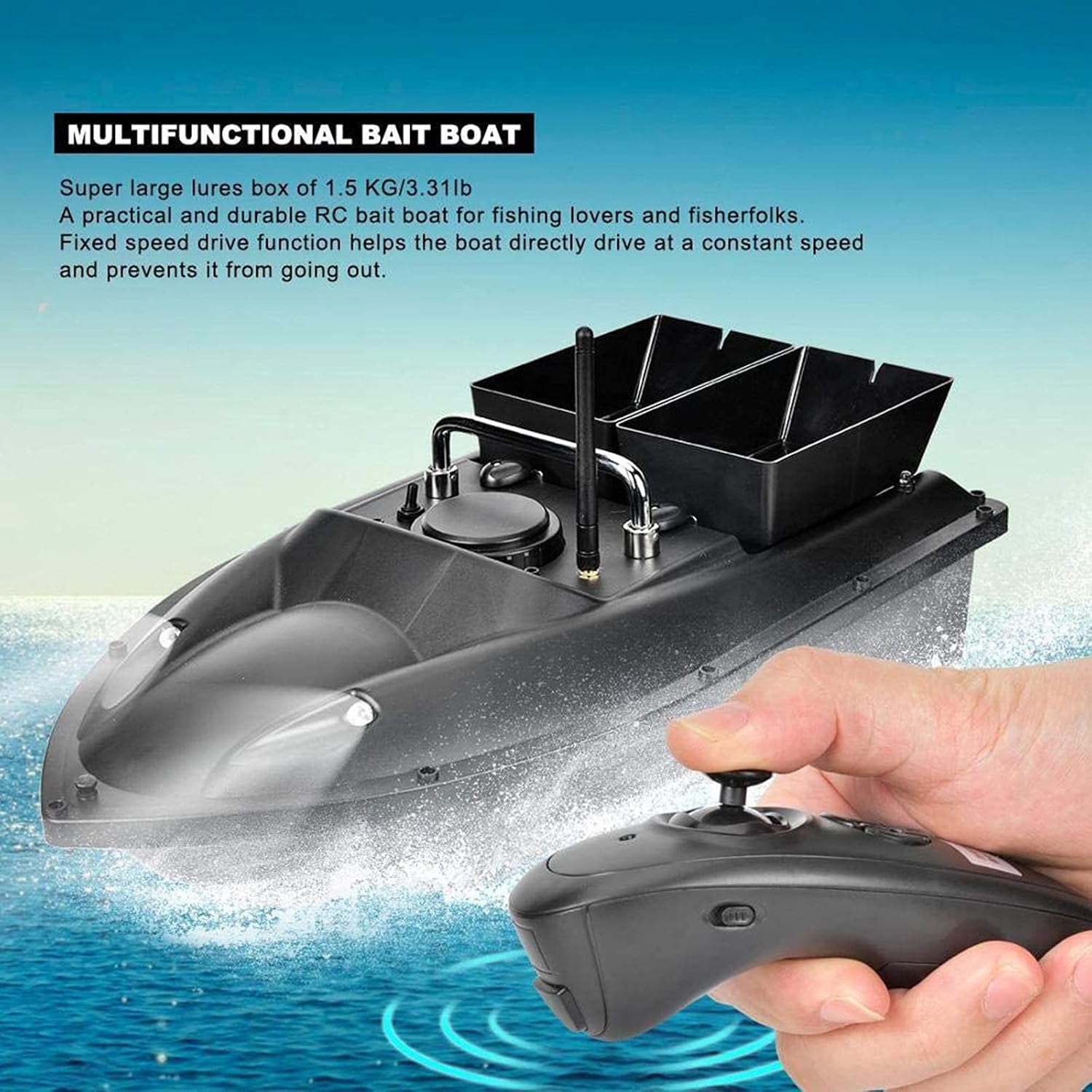 Barca Esca RC con Telecomando, Barca Esca per Adulti e Bambini, fishfinder, Alimentazione da 1,5 kg, Due Serbatoi per Esche indipendenti, Telecomando da 500 m, per Piscine e Laghi.