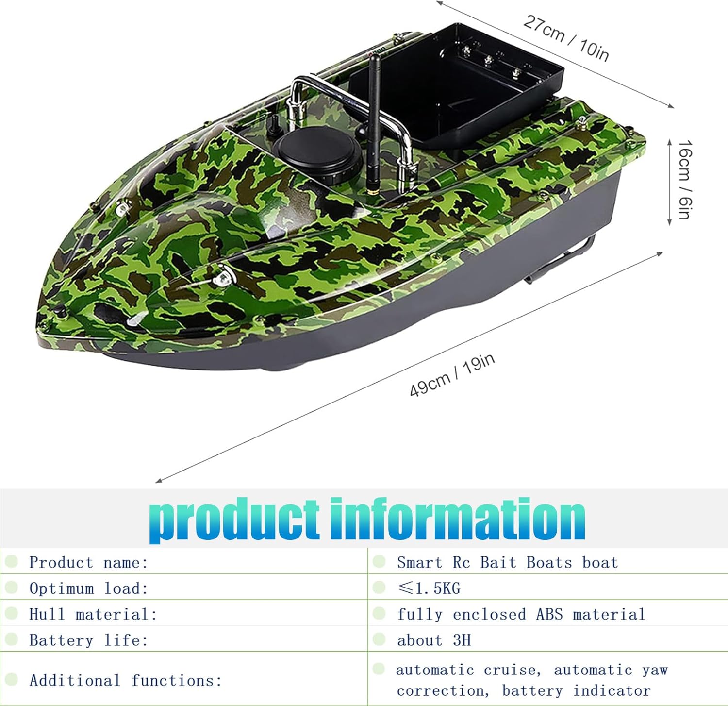 【Batteria a lunga durata】- Il fishfinder può trasportare fino a 1,5 kg in un unico scomparto, batteria integrata da 5200 mAh, la durata continua della batteria può essere utilizzata per circa 2-3 ore, la distanza del telecomando può raggiungere circa 500 metri senza ostacoli e le prestazioni anti-vento e onde sono di grado 3-4. 【Crociera a velocità fissa】-La barca da pesca con esche ha un sistema di bilanciamento automatico per la crociera automatica. Quando la barca da pesca Smart RC Bait Boats sbanda a causa di vento e onde eccessivi durante il viaggio, i doppi motori controlleranno efficacemente la direzione della barca, in modo che continui ad andare dritta. 【Scafo in materiale ingegneristico ABS】- Lo scafo del gommone da pesca adotta un materiale ingegneristico ABS completamente chiuso, che ha un'impermeabilità, una resistenza e una resistenza all'usura superiori, ha una forte resistenza ai graffi, un'atmosfera meravigliosa, è solido e stabile, ha una forte resistenza al vento e alle onde. 【Facile da usare】-Un tasto per accendere il pulsante del cruise control semplifica il funzionamento della nave in linea retta a una velocità media. L'illuminazione a LED per la pesca notturna è comoda per la pesca notturna per trovare con precisione la tana. La correzione automatica del percorso, il movimento ad alta resistenza e i doppi motori sono pieni di potenza. 【Motori ad alta velocità】- Le barche esche RC intelligenti hanno un potente sistema di motore a doppia potenza, funzionamento silenzioso, senza disturbare il banco di pesci. Un'elica a tre pale efficiente e migliorata fornisce una potenza elevata e una velocità maggiore.