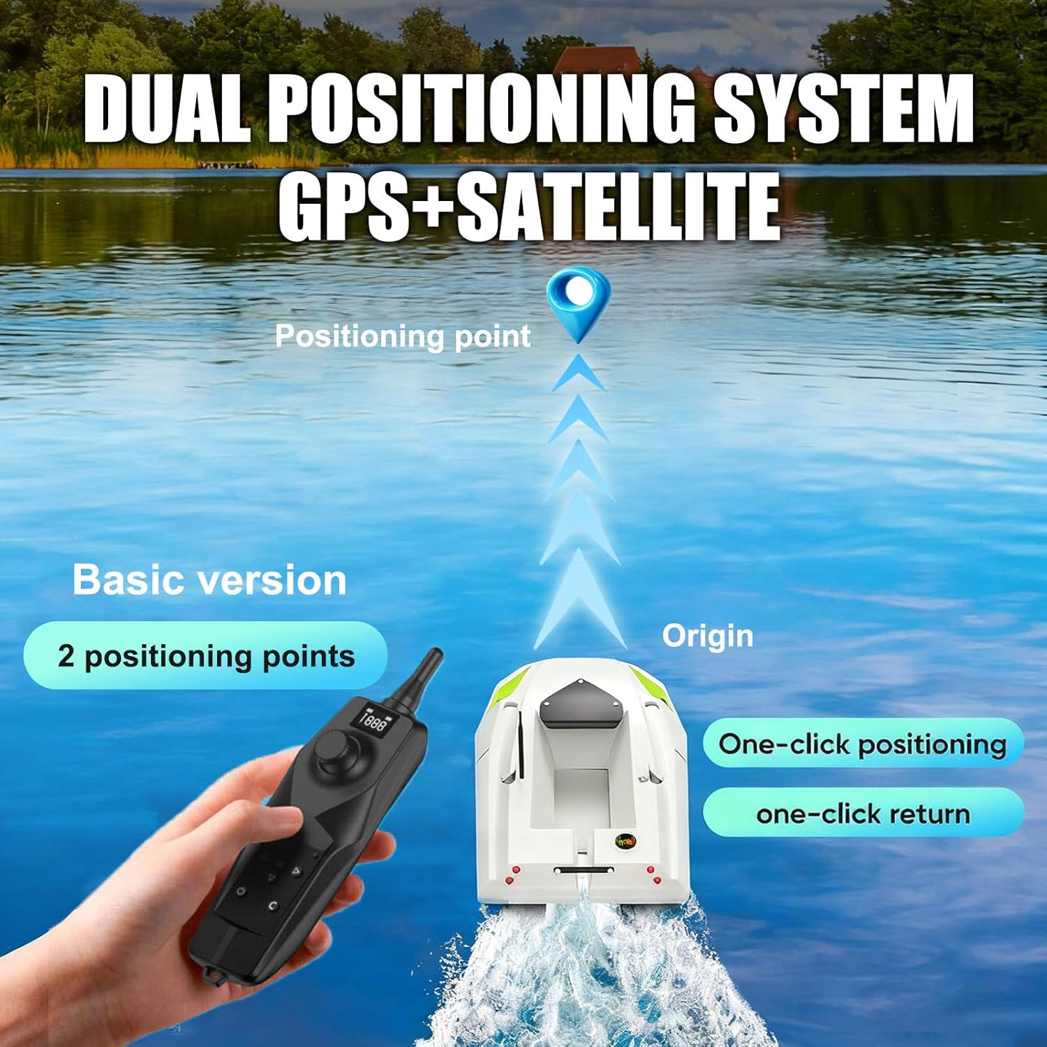 Barca Esca RC per Pesca alla Carpa, Controllo 500M, Carico 2KG, 3 velocità, Doppia Batteria, Rilascio Esche di Fondo di Precisione con Luce LED per Pesca Notturna e Professionisti 2pos.Point