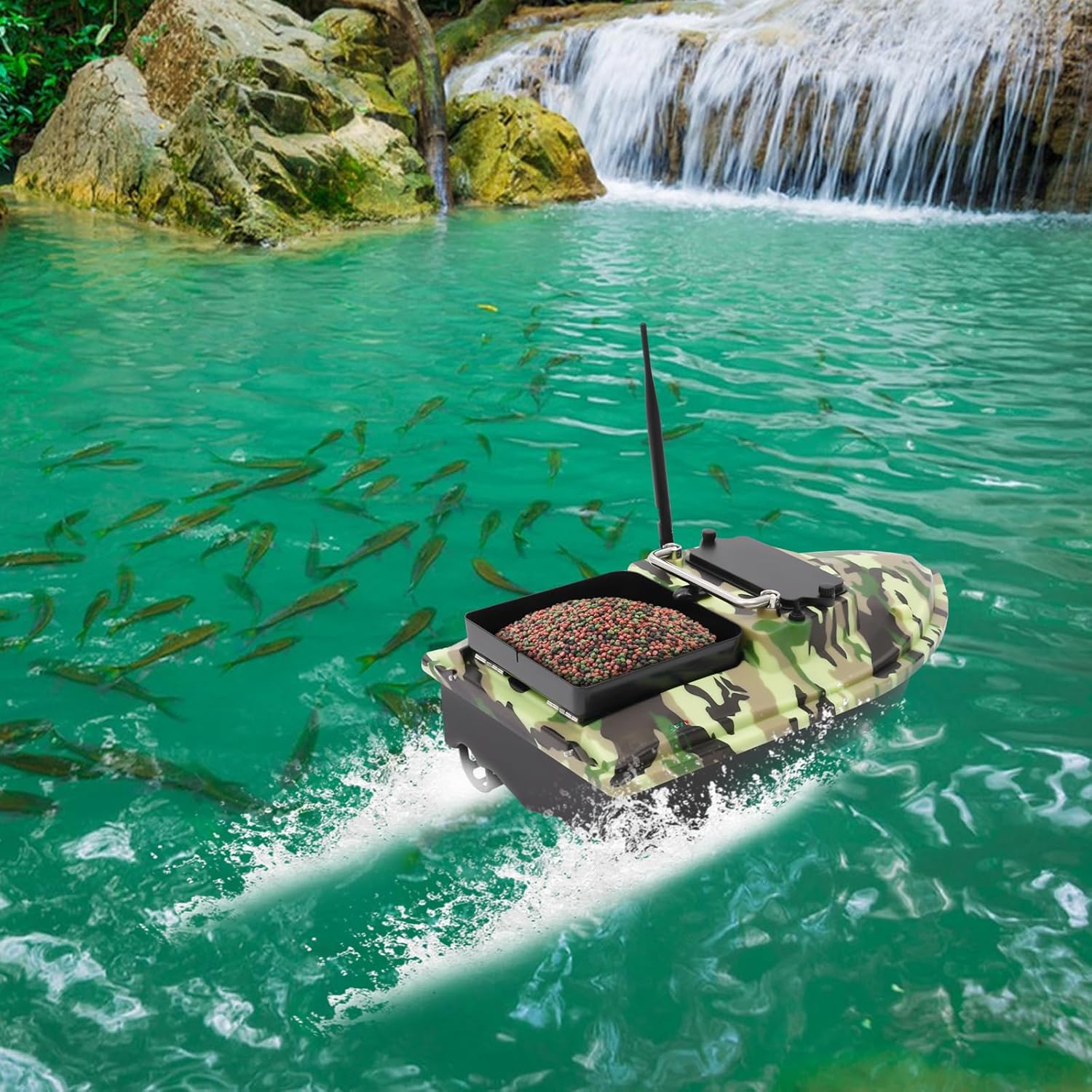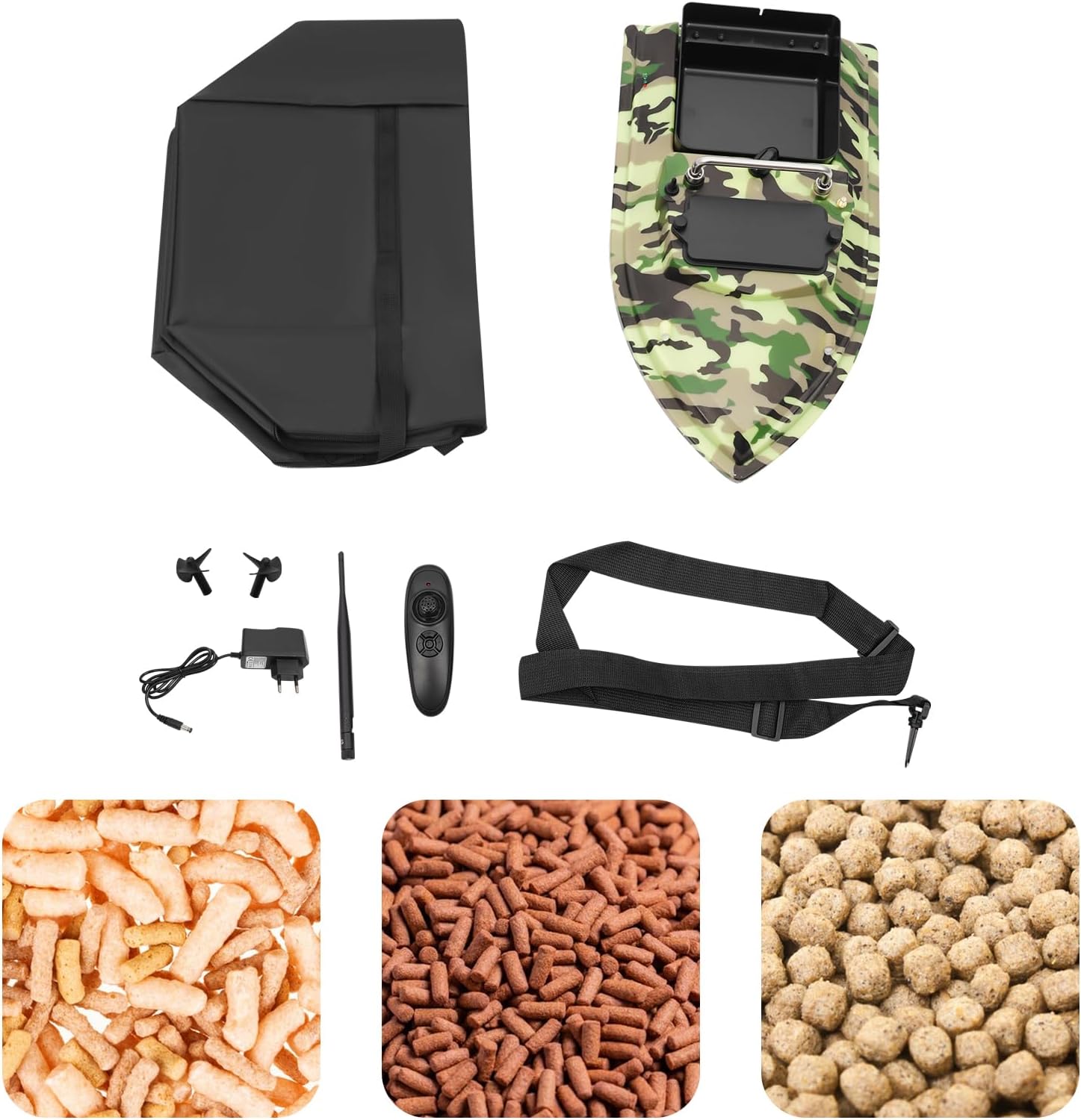 Propulsione: sistema a doppio motore per correzione stabile e alta manovrabilità Sicurezza: l'allarme acustico a bassa corrente impedisce la perdita della barca in caso di batteria scarica Efficienza: il design aerodinamico riduce la resistenza all'acqua in caso di vento di forza 3-4 Praticità: manico pieghevole in acciaio inox e confezione compatta da 53 cm per un facile trasporto Capacità: il contenitore per esche contiene 1,5 kg di mangime con dispositivo di inclinazione automatico per un'applicazione precisa