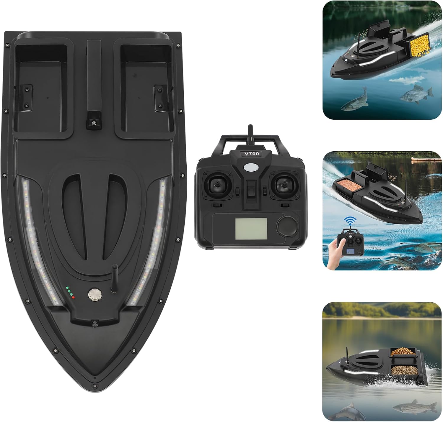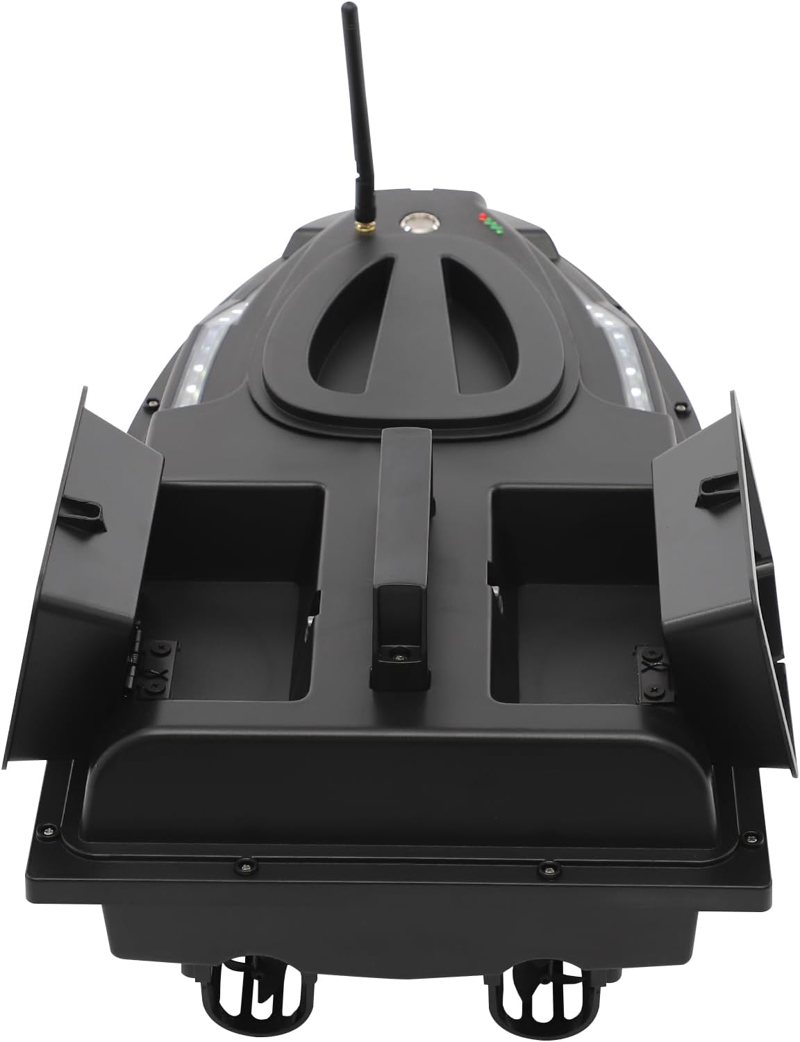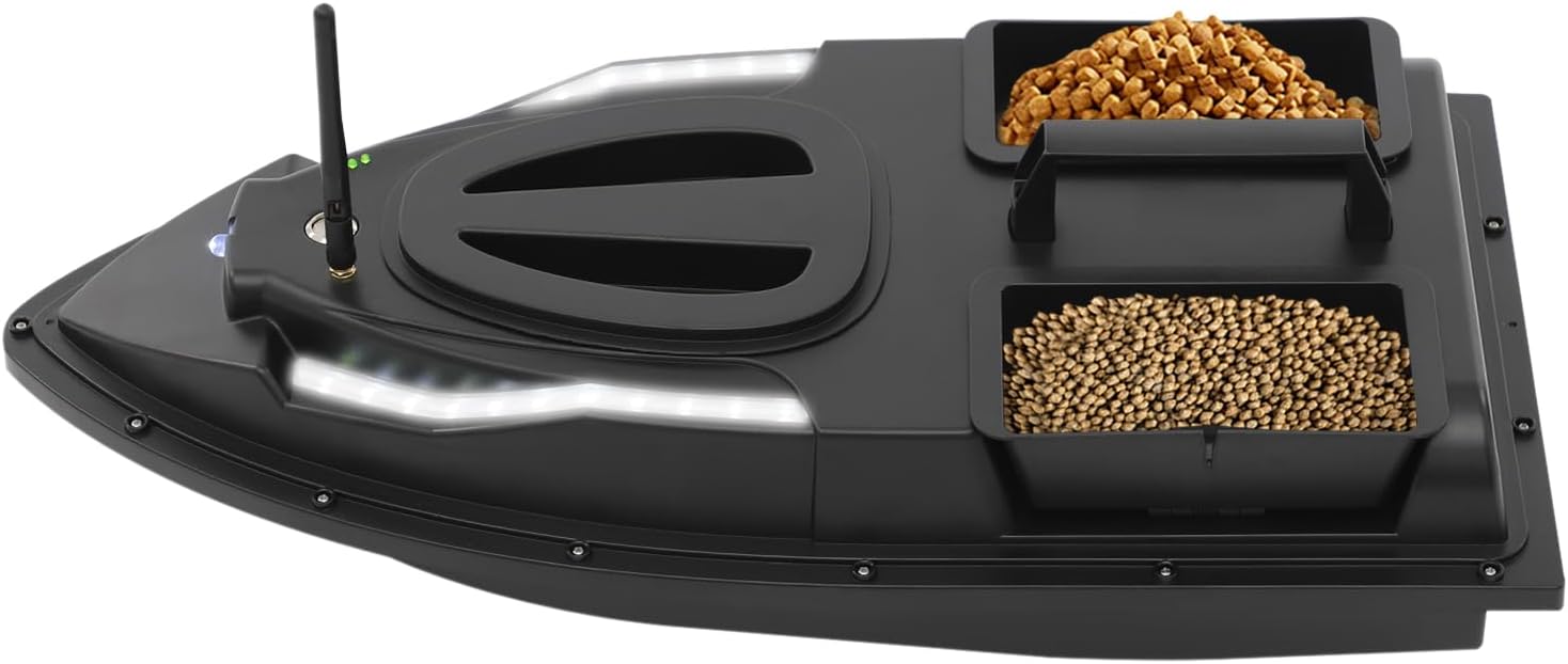Durevole: il corpo principale del prodotto è realizzato in ABS ed è realizzato con stampaggio a iniezione. È resistente agli urti, all'acqua, all'usura, antigraffio e robusto e garantisce una lunga durata. Goditi la tua pesca: alimentato da due motori, può guidare a una velocità fino a 3,36 miglia all'ora. La fusoliera aerodinamica è stata trattata impermeabile ed è molto resistente al vento, in modo che possa ancora guidare anche a 3-4 livelli di vento. Ha un controllo fisso della velocità che gli consente di guidare in linea retta a velocità costante fino al luogo di pesca desiderato, lasciando le mani libere. Design premuroso: ha un promemoria di perdita di contatto e un promemoria a basso consumo energetico, in modo da poter richiamare la barca per sostituire la batteria in tempo per evitare che la barca si spenga fuori controllo. La velocità del motore può essere regolata finemente per migliorare efficacemente il problema dell'imbardatura, rendendo la barca più stabile da usare. Facile da usare: il segnale del telecomando è stabile e ti aiuta a controllare le navi entro un raggio di 1640 piedi senza ostacoli, mentre il display LCD ti facilita l'osservazione del corpo della barca e del livello della batteria del telecomando e rende il funzionamento più libero e conveniente Forte capacità di resistenza: la batteria ricaricabile di grande capacità (5200 mAh) ha una lunga durata e, quando è completamente carica, la barca può guidare ininterrottamente per 2 ore per soddisfare le vostre esigenze di pesca. Inoltre, i due contenitori per esche possono contenere fino a 1,5 kg/3,31 libbre di esche, riducendo la frequenza di recupero delle esche e garantendo una battuta di pesca di successo.