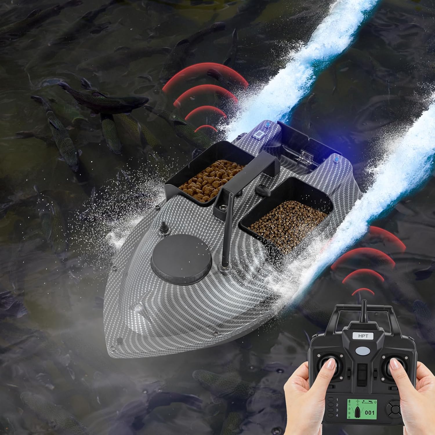 **Ampia applicazione**: ideale per la pesca in fiumi, laghi e mari ad alta portata e capacità portante; **Controllo preciso**: telecomando con schermo LCD e portata di 600 m per una navigazione precisa; **Lunga durata di funzionamento**: due batterie agli ioni di litio con un tempo di standby fino a 90 minuti per batteria; **Visibilità notturna**: luci notturne a LED anteriori e posteriori per una visione ottimale al buio; **Robusto e impermeabile**: materiale ABS con scafo impermeabile e vano batteria per un utilizzo affidabile in qualsiasi condizione atmosferica.