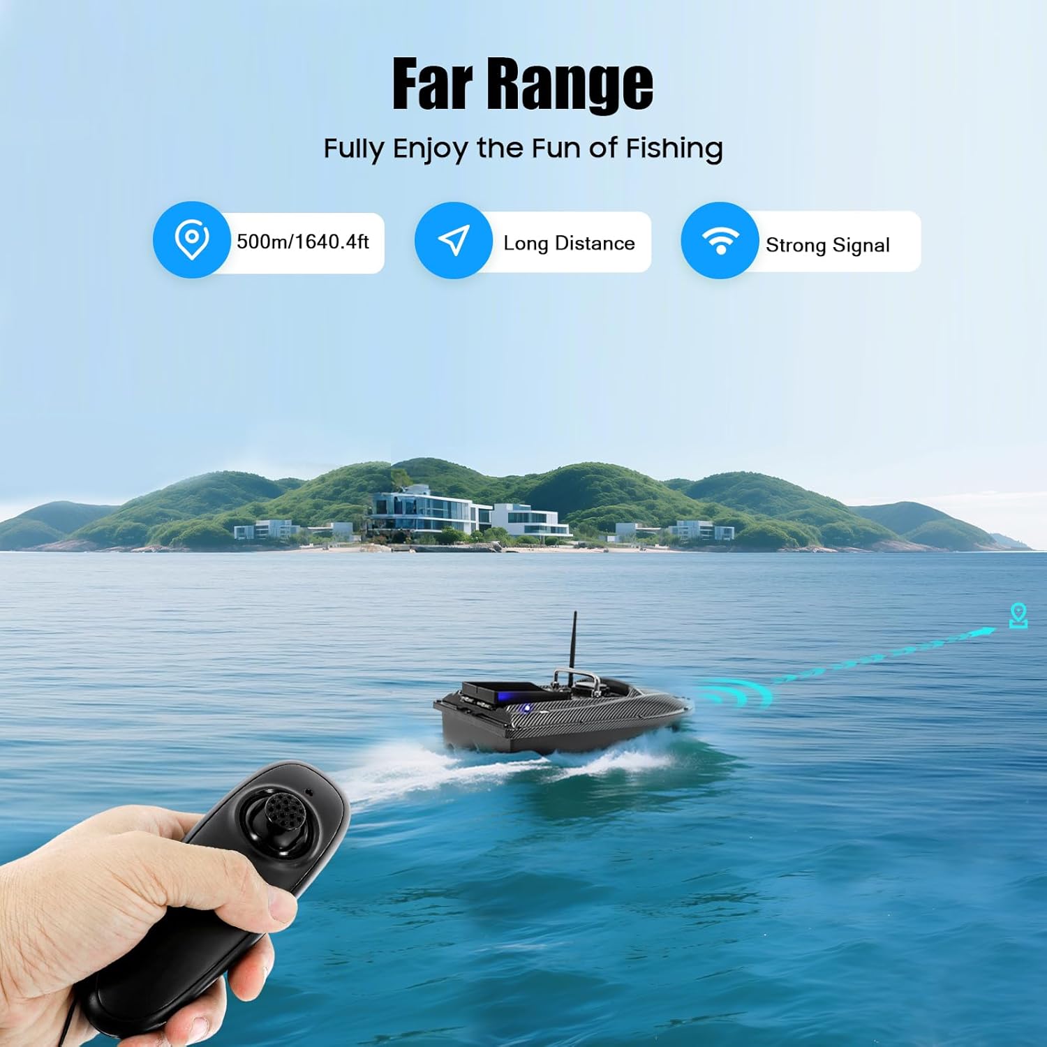 TELECOMANDO ULTRALLANGE: con telecomando ultra lungo 500 metri, segnale forte e stabile, basta premere il pulsante del telecomando, è possibile controllare con precisione la barca da pesca, facile da controllare la distanza di pesca Design One Drop to the BOTTOM : tamburo ribaltabile tipo singolo contenitore design, può essere capovolto direttamente quando raggiunge la posizione di destinazione, esca one-time, funzionamento semplice e conveniente, facile da attirare i pesci Forte capacità di carica: peso di carico fino a 1,5 kg, può caricare una grande quantità di esche in una sola volta, riduce la ricarica frequente, offre comodità per il processo di pesca, rende la pesca più facile LUNGA DURATA DELLA BATTERIA: ogni carica può essere utilizzata per 2-3 ore, lunga durata della batteria, rendendo la tua battuta di pesca più comoda e facile, goditi il divertimento della pesca senza ricariche frequenti Funzione di posizionamento della luce notturna: dotata di luci a LED appositamente progettate per la pesca notturna, può individuare con precisione la zona di pesca di notte, rendendo la pesca notturna più sicura e accurata per estendere il tempo di pesca
