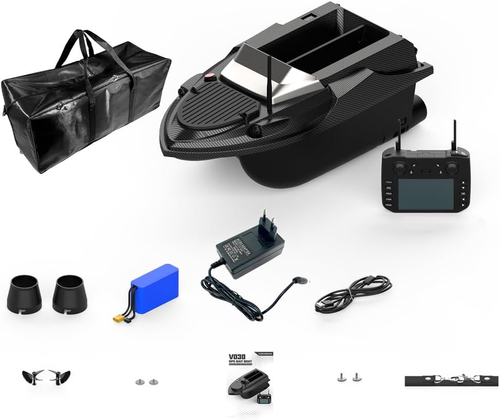 Portata del telecomando a lunga distanza: con 500 m di distanza del telecomando ultra lunga, il segnale del telecomando della barca è forte e devi solo premere il pulsante sul telecomando per controllare la distanza Forte capacità di carico: con un peso di carico di 1,5 kg/3.31 lbs, la barca esca da pesca può contenere un sacco di esche in una sola volta, che porta la comodità del processo di pesca. Posizionamento della luce notturna: c'è una luce a LED appositamente progettata per la pesca notturna, che lo rende più preciso per trovare la zona di pesca di notte. One Drop: Questa barca esca da pesca è un secchio ribaltabile tipo singolo contenitore. Questo può essere capovolto direttamente quando raggiungi il tuo obiettivo e lasci cadere l'esca in una volta. È molto facile e comodo da usare. Scafo aerodinamico: lo scafo aerodinamico non solo rende la barca più bella, ma assicura anche che la barca funzioni più agevolmente e più velocemente in acqua. Controllabile con una sola mano: c'è un telecomando speciale per controllare la barca, è possibile ruotare la barca in avanti, indietro, sinistra ea destra e ruotare con una mano per manipolare.